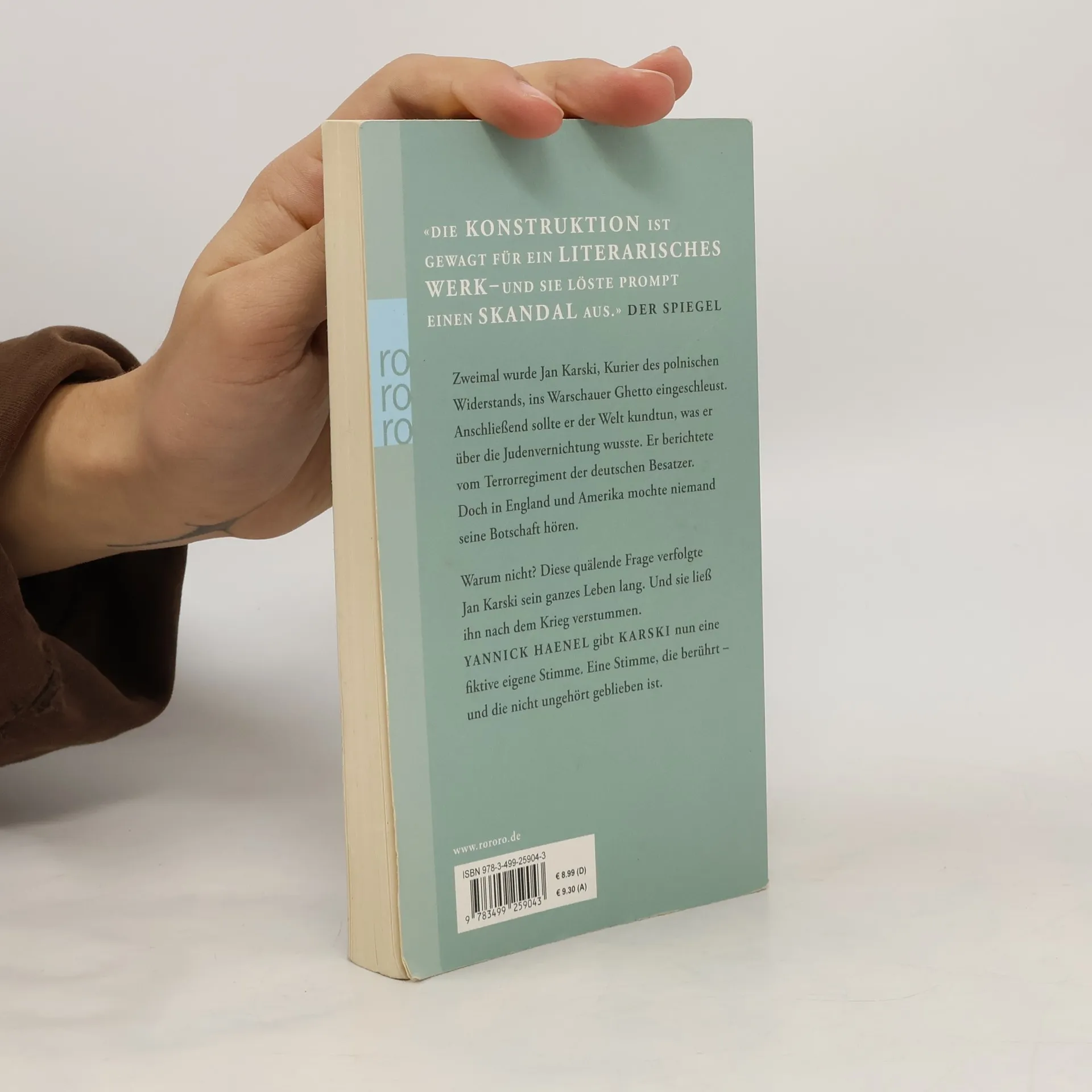 «Die Konstruktion ist gewagt für ein literarisches Werk – und sie löste prompt einen Skandal aus.» Der Spiegel Zweimal wurde Jan Karski, Kurier des polnischen Widerstands, ins Warschauer Ghetto eingeschleust. Anschließend sollte er der Welt kundtun, was er über die Judenvernichtung wusste. Er berichtete vom Terrorregiment der deutschen Besatzer. Doch in England und Amerika mochte niemand seine Botschaft hören. Warum nicht? Diese quälende Frage verfolgte Jan Karski sein ganzes Leben lang. Und sie ließ ihn nach dem Krieg verstummen. Yannick Haenel gibt Karski nun eine fiktive eigene Stimme. Eine Stimme, die berührt – und die nicht ungehört geblieben ist.