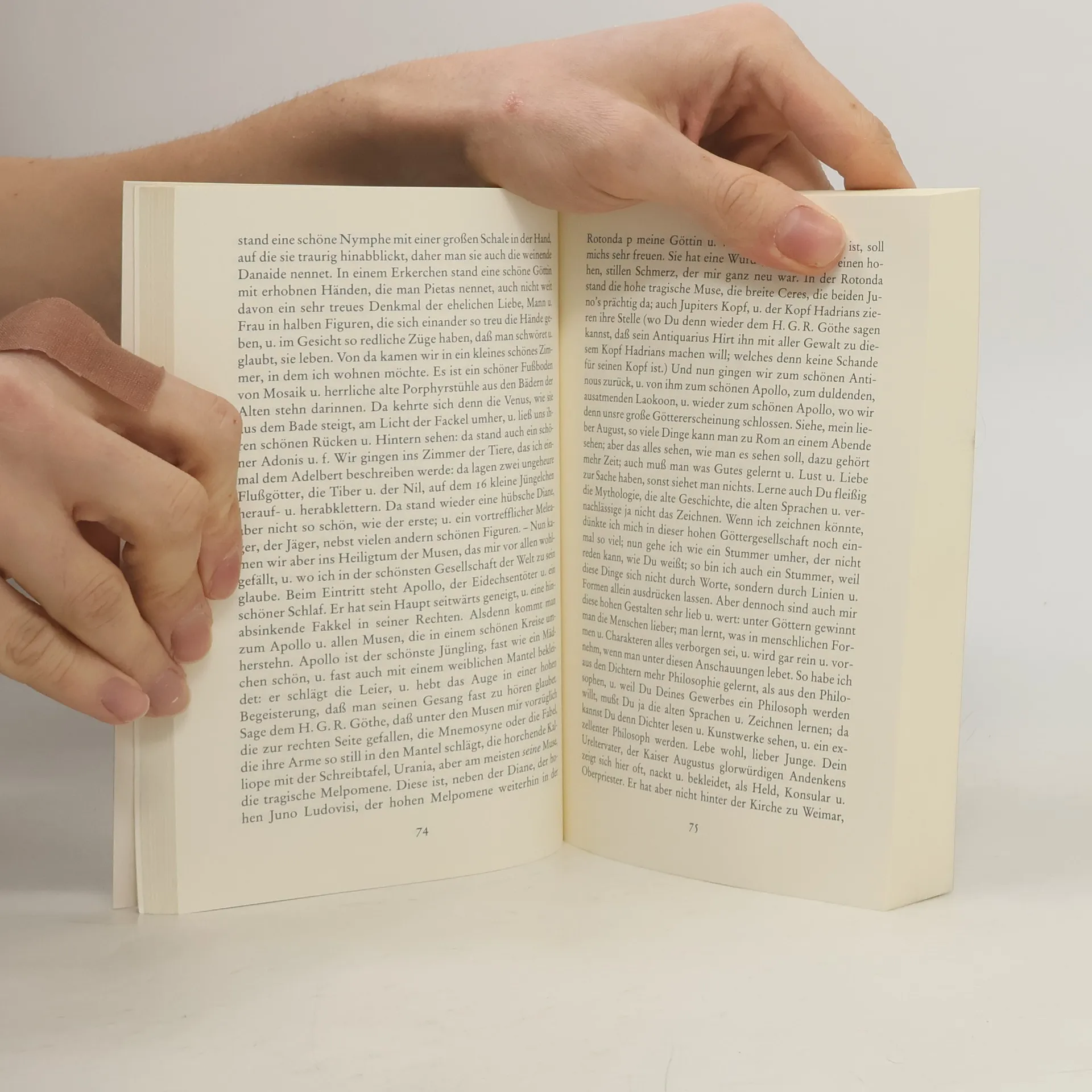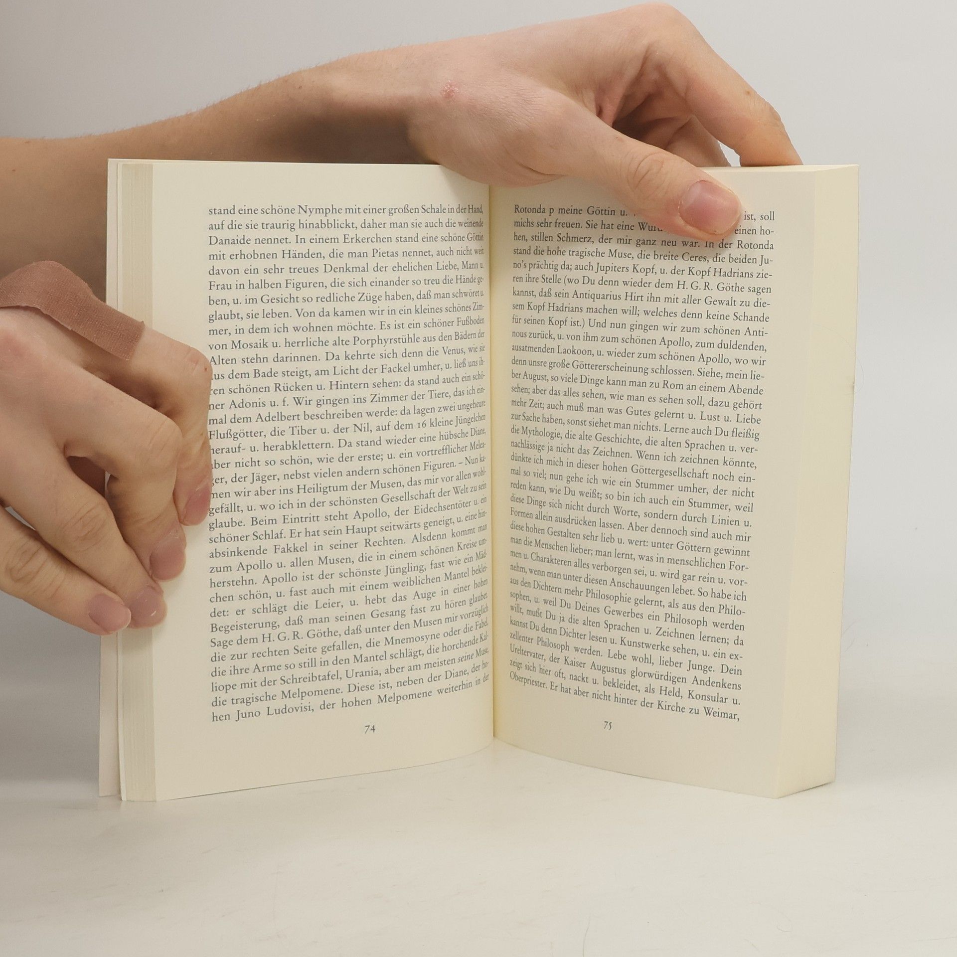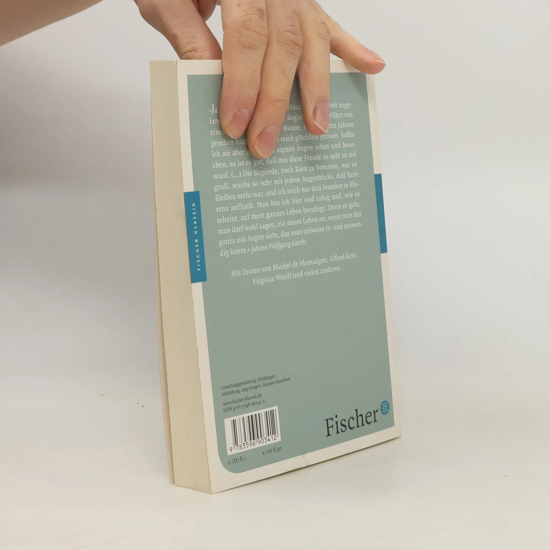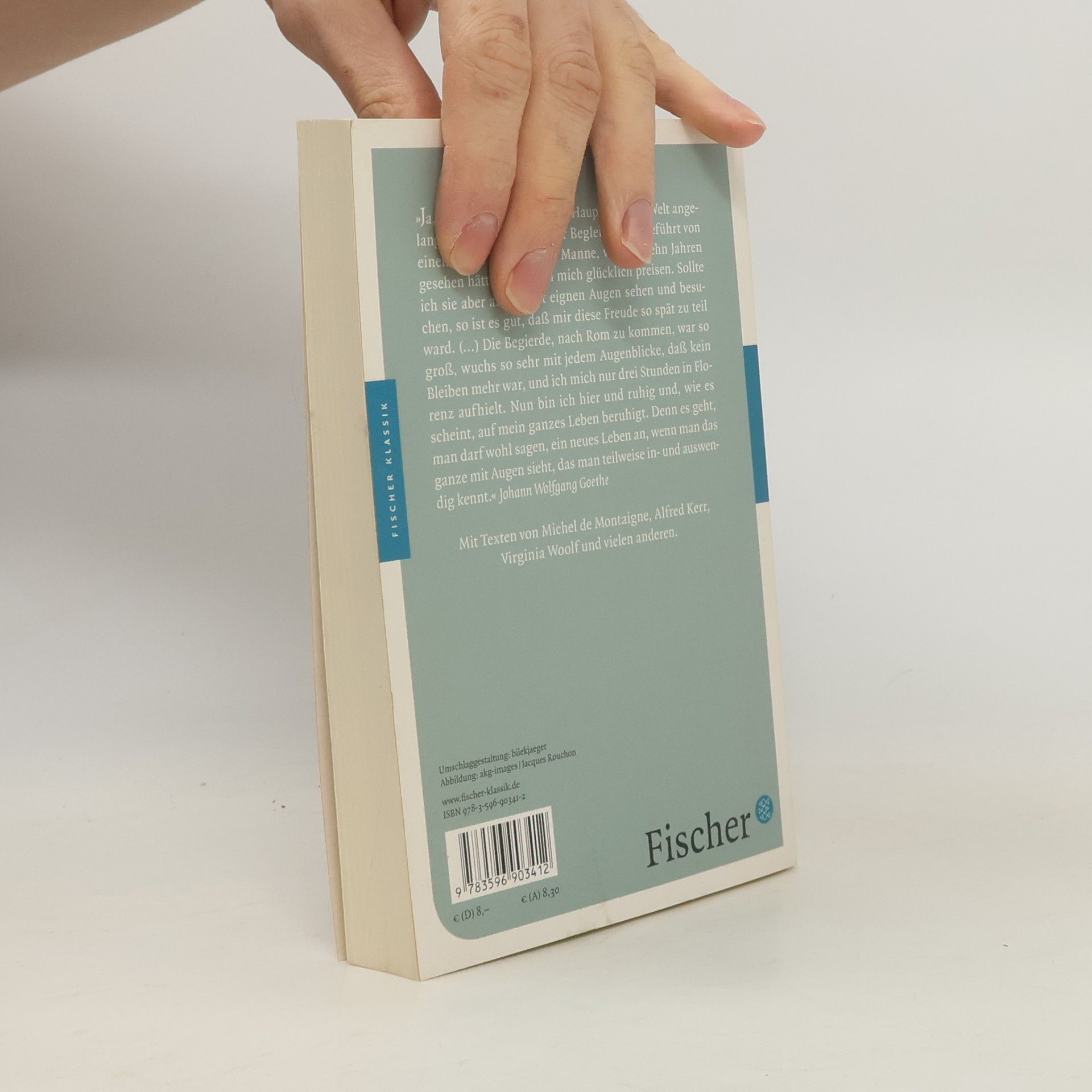 »Ja, ich bin endlich in dieser Hauptstadt der Welt angelangt! Wenn ich sie in guter Begleitung, angeführt von einem recht verständigen Manne, vor fünfzehn Jahren gesehen hätte, wollte ich mich glücklich preisen. Sollte ich sie aber allein, mit eignen Augen sehen und besuchen, so ist es gut, daß mir diese Freude so spät zu teil ward. […] Die Begierde, nach Rom zu kommen, war so groß, wuchs so sehr mit jedem Augenblicke, daß kein Bleiben mehr war, und ich mich nur drei Stunden in Florenz aufhielt. Nun bin ich hier und ruhig und, wie es scheint, auf mein ganzes Leben beruhigt. Denn es geht, man darf wohl sagen, ein neues Leben an, wenn man das ganze mit Augen sieht, das man teilweise in- und auswendig kennt.« Goethe, Italienische Reise Mit Texten von Michel de Montaigne, Johann Wolfgang Goethe, Alfred Kerr, Virginia Woolf und anderen.