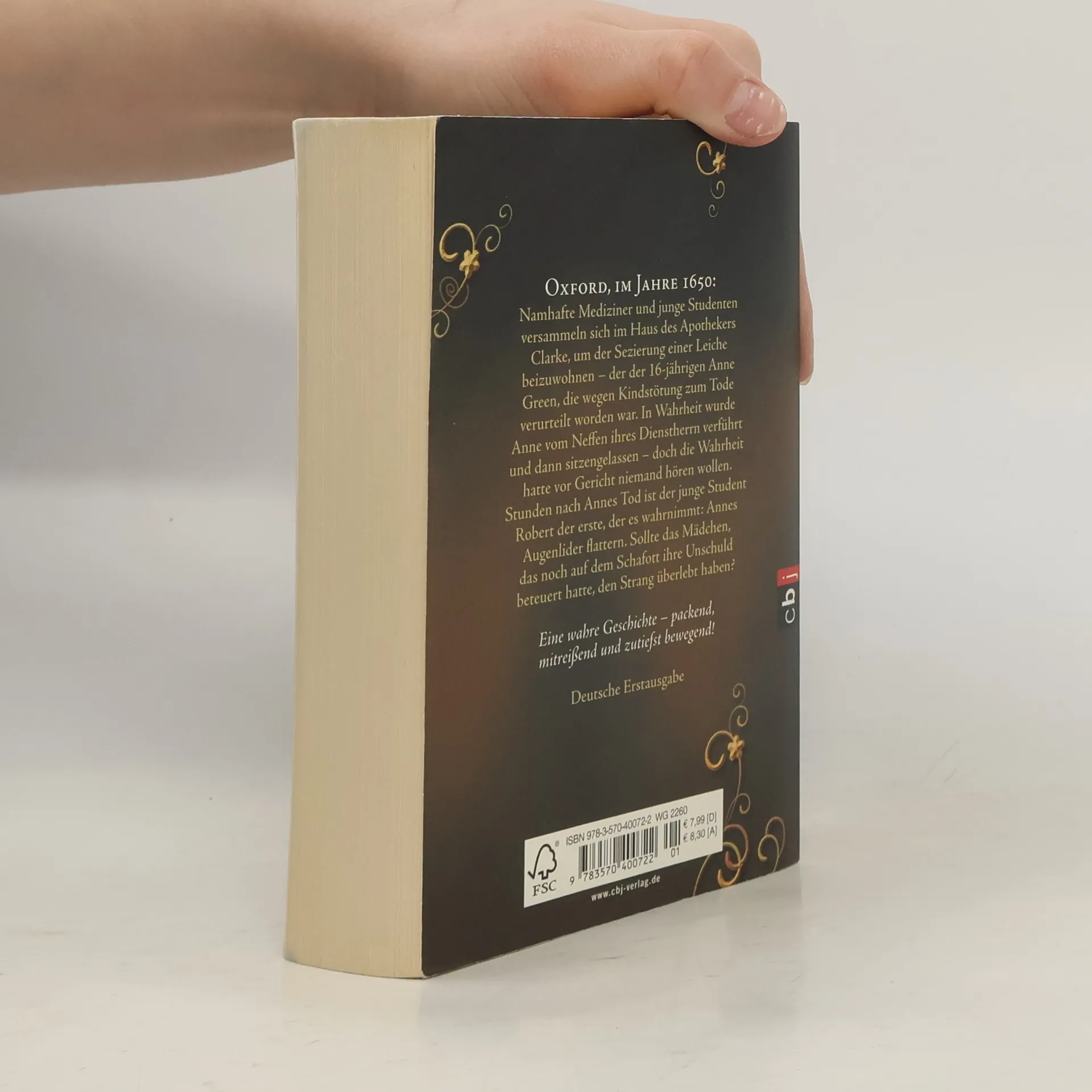 Packend, mitreißend und ungeheuer einfühlsam erzählt Oxford, im Jahre 1650: Namhafte Mediziner und junge Studenten versammeln sich im Haus des Apothekers Clarke, um der Sezierung einer Leiche beizuwohnen. Die Tote ist die sechzehnjährige Anne Green, die wegen Kindstötung zum Tod am Strang verurteilt und gehängt worden ist. In Wahrheit wurde Anne Green vom Neffen ihres Dienstherren verführt und dann sitzengelassen – doch die Wahrheit hatte vor Gericht niemand hören wollen. Stunden nach Annes Tod ist der junge Student Robert der erste, der es wahrnimmt: Anne Greens Augenlider flattern. Sollte das Mädchen, das noch auf dem Schafott seine Unschuld beteuert hatte, den Strang überlebt haben?