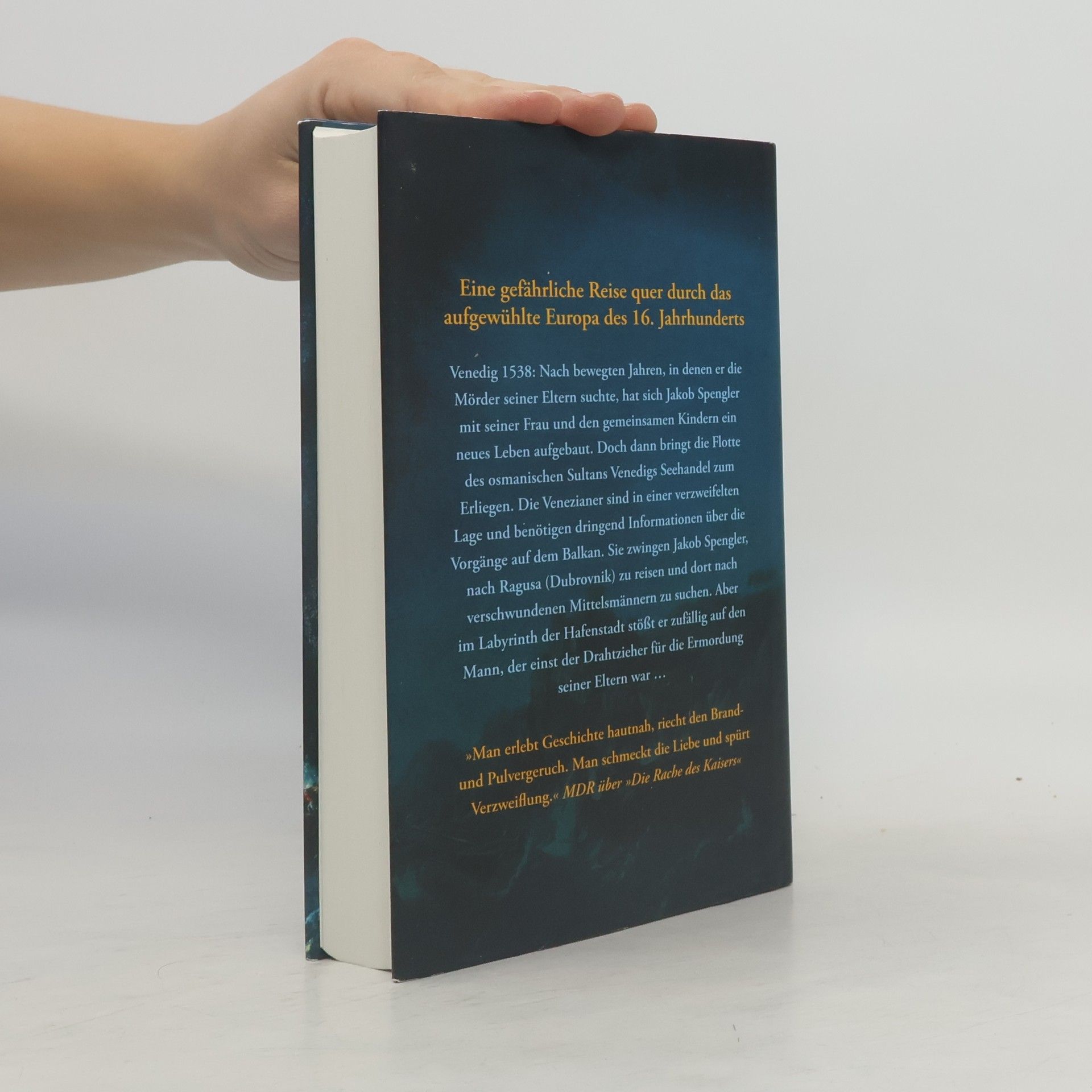 Eine gefährliche Reise quer durch das aufgewühlte Europa des 16. Jahrhunderts Venedig 1538: Nach blutigen und bewegten Jahren, in denen Jakob Spengler die Mörder seiner Eltern suchte, sind Friede und Sesshaftigkeit ein willkommenes Geschenk für ihn. In der Lagunenstadt hat er sich mit seiner Frau Laura und den gemeinsamen Kindern ein neues Leben aufgebaut. Doch dann dringt der Admiral des osmanischen Sultans mit einer mächtigen Flotte im westlichen Mittelmeer vor und bringt Venedigs Seehandel zum Erliegen. Die Venezianer sind in einer verzweifelten Lage; sie benötigen genaue Informationen über die Vorgänge auf dem Balkan. Da erhält Jakob Spengler den Auftrag, nach Ragusa, dem heutigen Dubrovnik, zu reisen, um dort dem rätselhaften Schicksal einiger verschollener Mittelsmänner auf die Spur zu kommen. Und im Labyrinth der Hafenstadt stößt Spengler auf den Mann, der einst der Drahtzieher für die Ermordung seiner Eltern war …