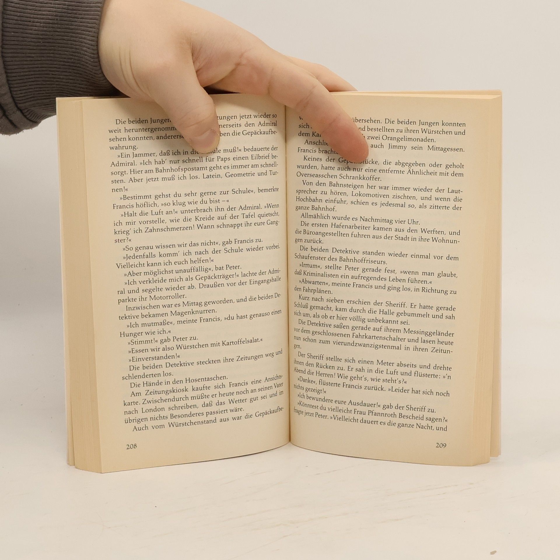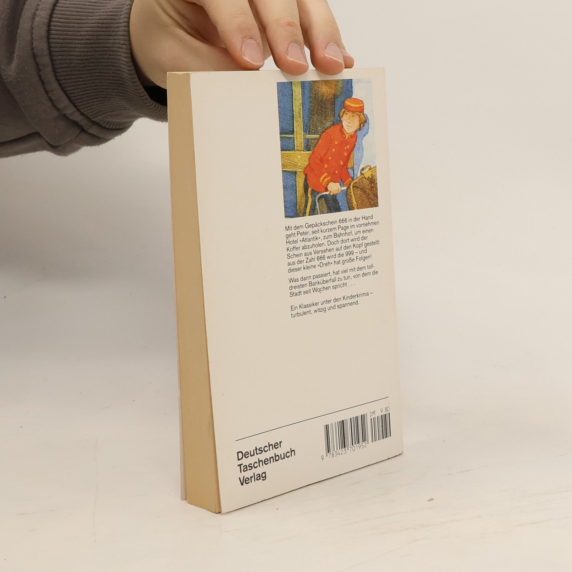 Peter ist pfiffig, schnell - und neu im schicken Hotel Atlantic. Eine seiner ersten Aufgaben als Page ist es, für den jungen Hotelgast Francis Overseas einen Koffer vom Hamburger Hauptbahnhof abzuholen. Doch der Mann am Schalter verwechselt Gepäckstück 666 mit Gepäckstück 999. Und so zieht der staunende Francis im Hotel statt seiner Kricketschläger einen beeindruckenden Packen Geldscheine aus dem Koffer. Ist das vielleicht die Beute aus dem Banküberfall von neulich? Francis und Peter beschließen, der Sache auf den Grund zu gehen ...