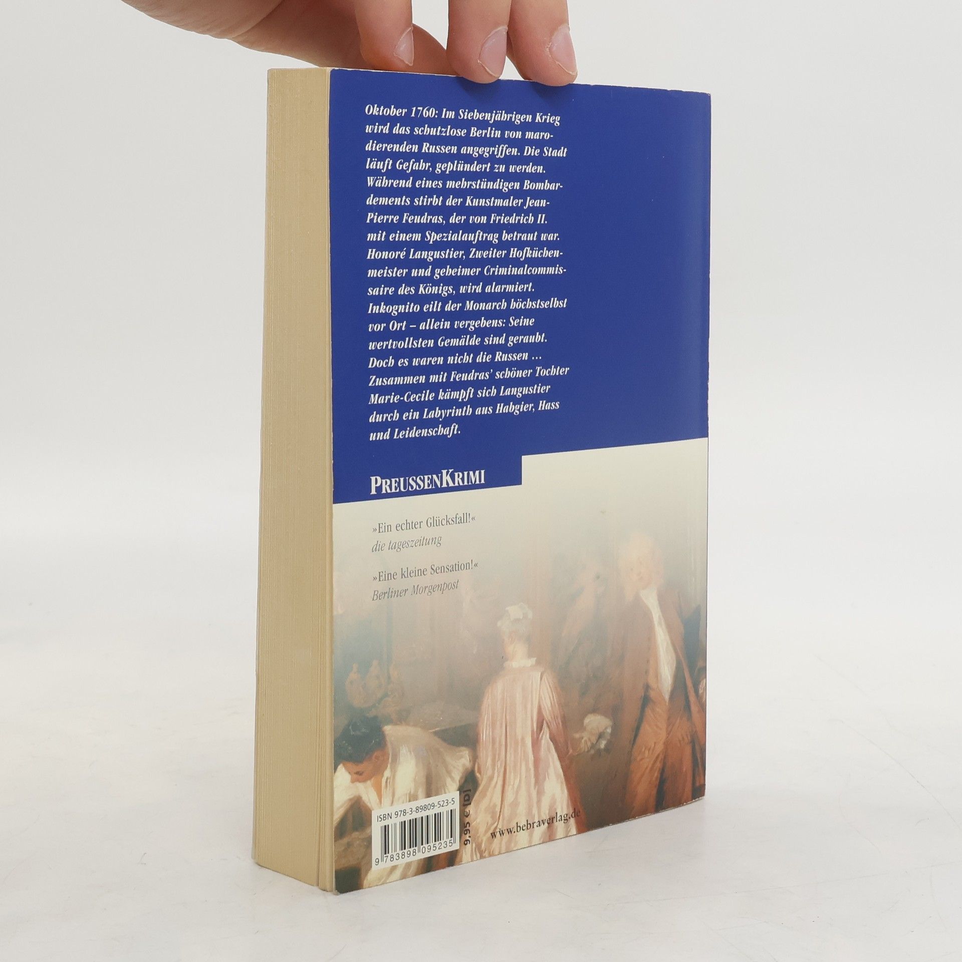 Oktober 1760: Während Friedrich II. mit seinen Truppen fern der Hauptstadt kämpft, besetzen Russen und Österreicher Berlin. Als der vom König hochgeschätzte Kunstmaler Jean-Baptiste Feudras bei einem Feuer ums Leben kommt, wird die Öffentlichkeit aufgeschreckt. Die russisch-österreichische Kommandantur tut freilich nichts, um die Hintergründe aufzuklären, weswegen der König – im Eilanmarsch, um Berlin zu befreien – seinen vor Ort verbliebenen Zweiten Hofküchenmeister mit Nachforschungen beauftragt. Honoré Langustier gerät in ein Labyrinth aus Habgier, Hass und Leidenschaft …