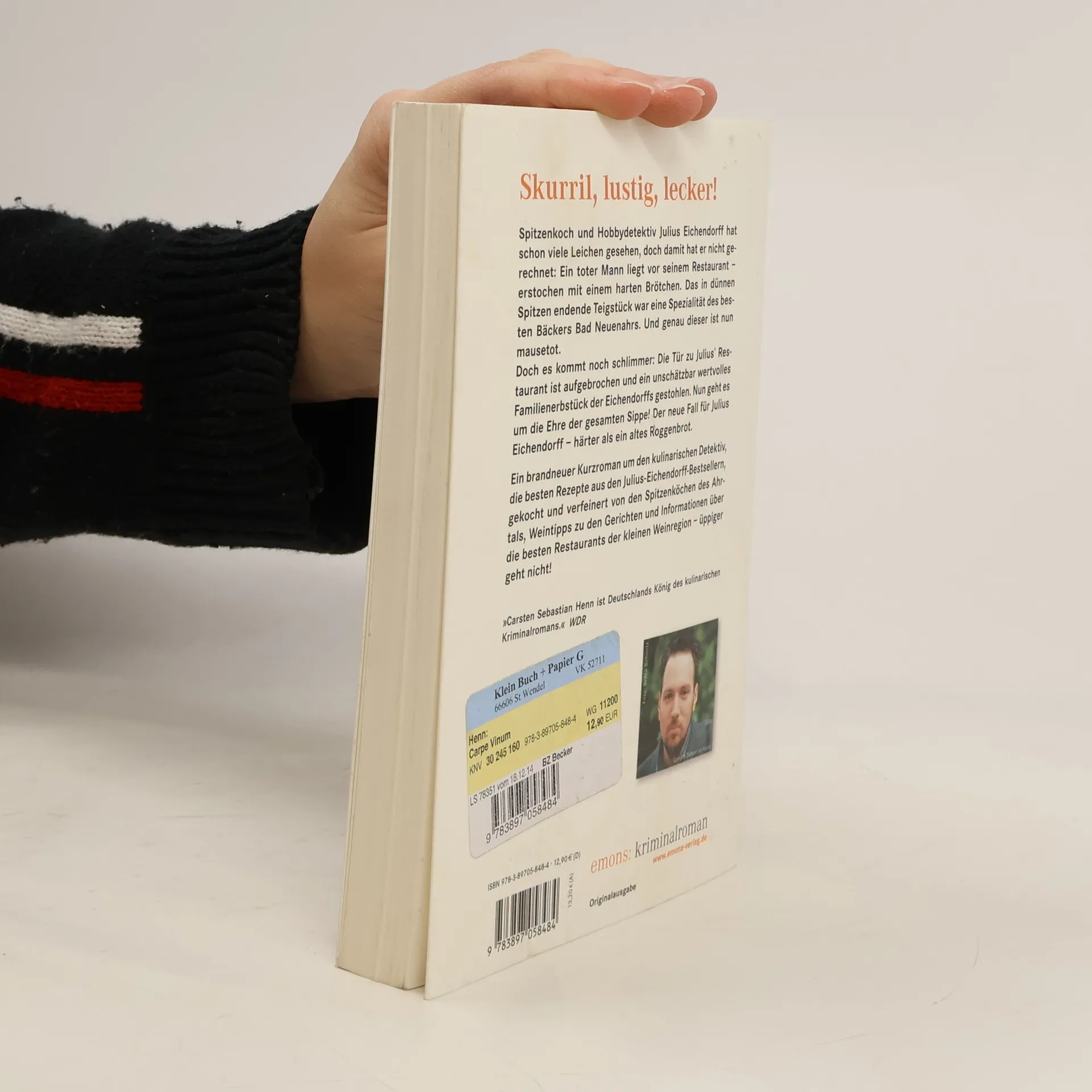 Spitzenkoch und Hobbydetektiv Julius Eichendorff hat schon viele Leichen gesehen, doch damit hat er nicht gerechnet: Ein toter Mann liegt vor seinem Restaurant – erstochen mit einem harten Brötchen. Das in dünnen Spitzen endende Teigstück war eine Spezialität des besten Bäckers Bad Neuenahrs. Und genau dieser ist nun tot. Doch es kommt noch schlimmer: Die Tür zu Julius’ Restaurant ist aufgebrochen und das Familienkochbuch der Eichendorffs gestohlen. Nun geht es um die Ehre der gesamten Sippe! Der neue Fall von Julius Eichendorff – härter als ein altes Roggenbrot. Ein brandneuer Kurzroman um den kulinarischen Detektiv, die besten Rezepte aus den Julius-Eichendorff-Bestsellern (z. B. das Menü für den Papst aus »Vinum Mysterium«, das legendäre Mördermenü aus »In Vino Veritas« oder das exotische Schokoladenmenü aus »Vino Diavolo«), gekocht und verfeinert von den Spitzenköchen des Ahrtals und Autor Carsten Sebastian Henn selbst; Ahrtaler Weintipps zu den Gerichten und Informationen über die besten Restaurants der kleinen Weinregion – üppiger geht nicht!.