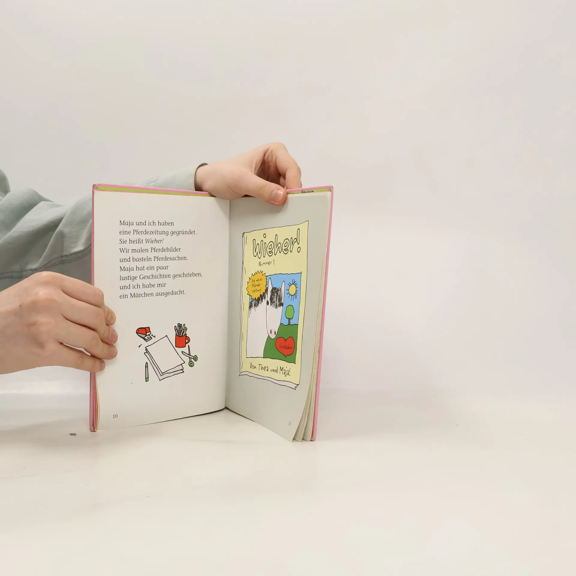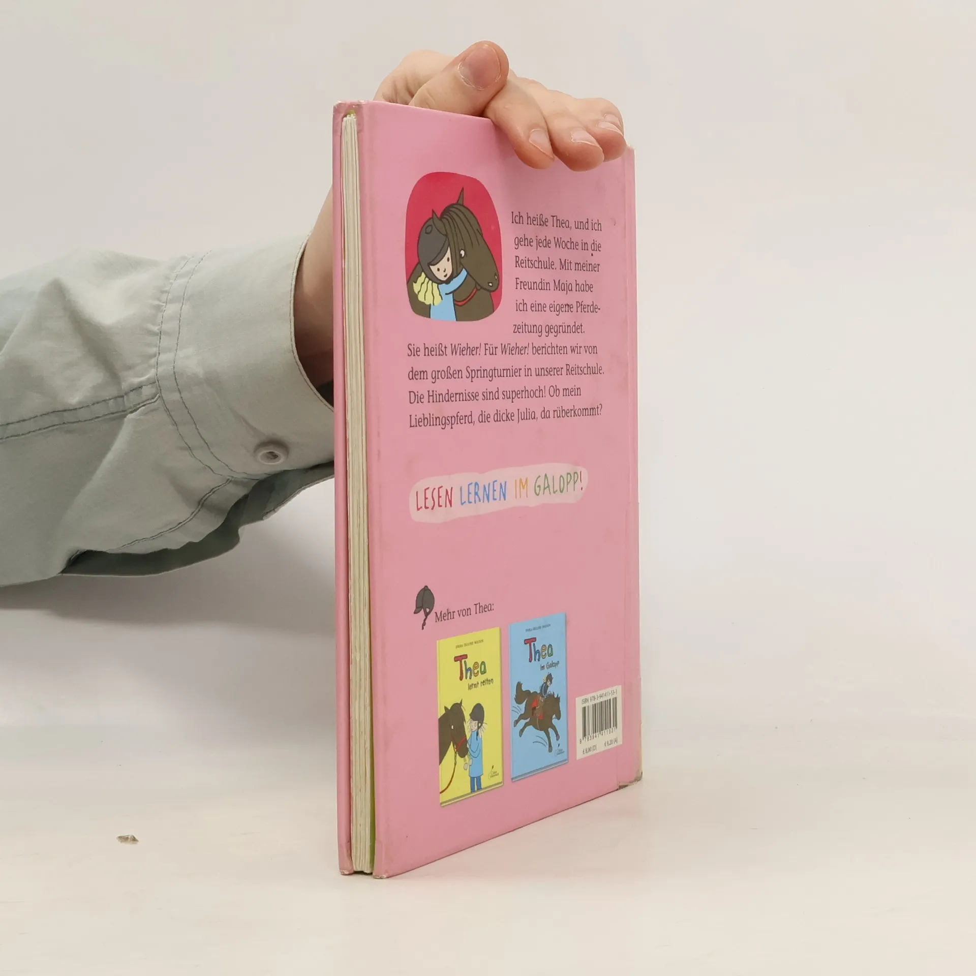 Großes Springturnier in der Reitschule! Thea ist für ihre Pferdezeitung „Wieher“ unterwegs und verfolgt alles ganz genau: wie die großen Mädchen auf ihren Pferden über die Hindernisse oder auch mal in den Dreck fliegen, wie die Preisschleifen verteilt werden und wie Hengst Popcorn seinem Namen alle Ehre macht.