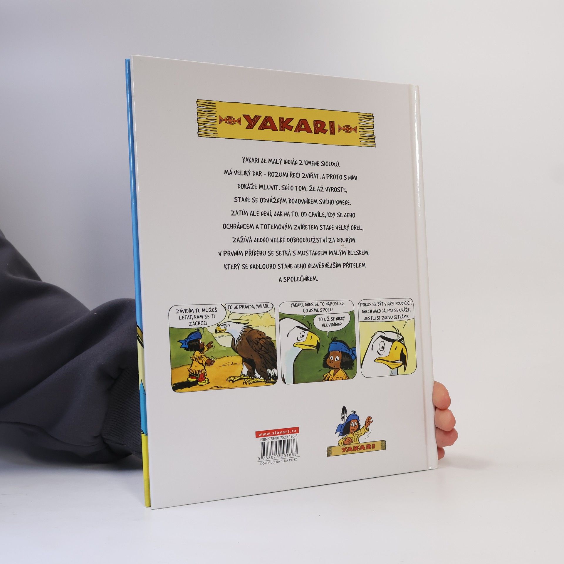 Yakari je indiánský chlapec, kterému se zdají neobyčejné sny, ve kterých se většinou setkává s Velkým orlem, svým totemovým zvířetem. Ten mu doporučí chovat se tak, aby se mu co nejvíc podobal. Yakari proto jde a napodobuje orla; dělá to však příliš doslova (například se pokouší létat), takže jeho snaha někdy nedopadne podle představ. Se svým přítelem Bizoním zrnkem se vydají pozorovat lovce při lovu mustangů. Yakari při té příležitosti zachrání Malého bleska, nepolapitelného a nezkrotného mustanga, a Velký orel mu za tento čin věnuje orlí pero. V táboře však Yakarimu nikdo nechce věřit, jak se k peru dostal, a jeho otec mu ho odebere. Yakari si pero nakonec po mnoha dobrodružstvích vyslouží. Dalším velkým ziskem ze všech těch peripetií je také přátelství Malého bleska, díky kterému Yakari objeví další svůj zvláštní dar: dokáže rozmlouvat se zvířaty.
