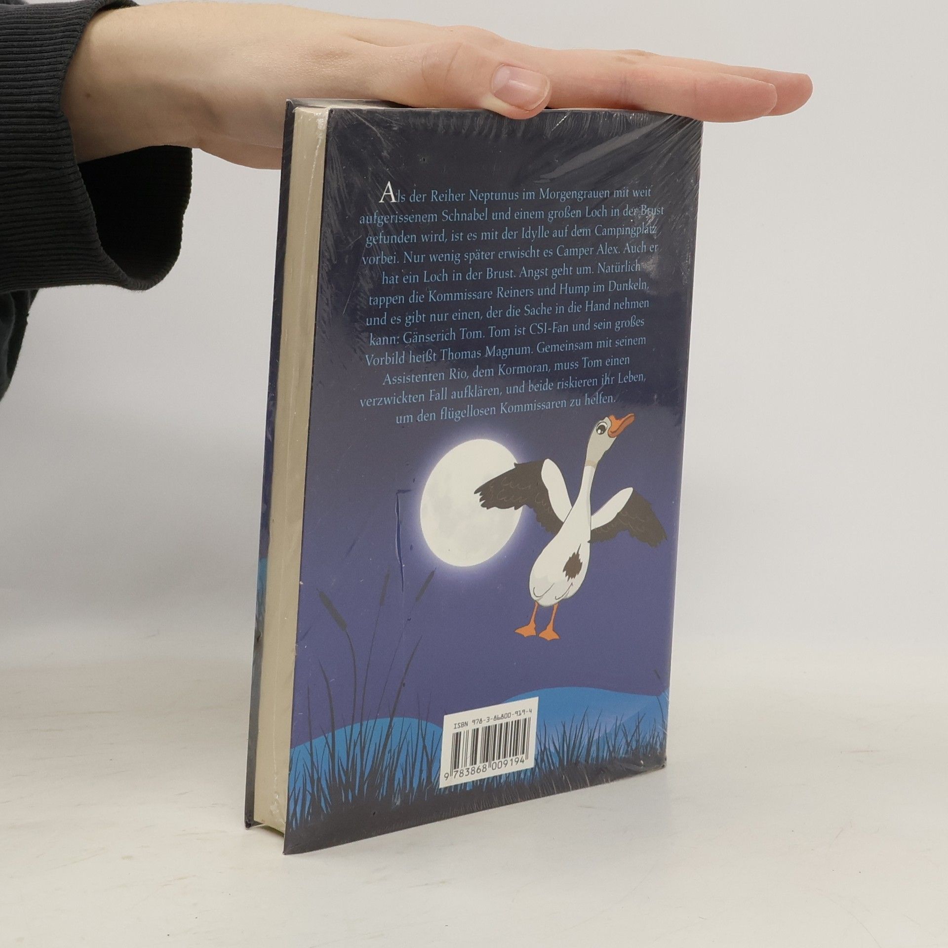 Als der Reiher Neptunus im Morgengrauen mit weit aufgerissenem Schnabel und einem großen Loch in der Brust gefunden wird, ist es mit der Idylle auf dem Campingplatz vorbei. Nur wenig später erwischt es Camper Alex. Angst geht um. Natürlich tappen die Kommissare Reiners und Hump im Dunkeln, und es gibt nur einen, der die Sache in die Hand nehmen kann: Gänserich Tom. Tom ist CSI-Fan und sein großes Vorbild heißt Thomas Magnum. Gemeinsam mit seinem Assistenten Rio, dem Kormoran, muss Tom einen verzwickten Fall aufklären und beide riskieren ihr Leben, um den flügellosen Kommissaren zu helfen.