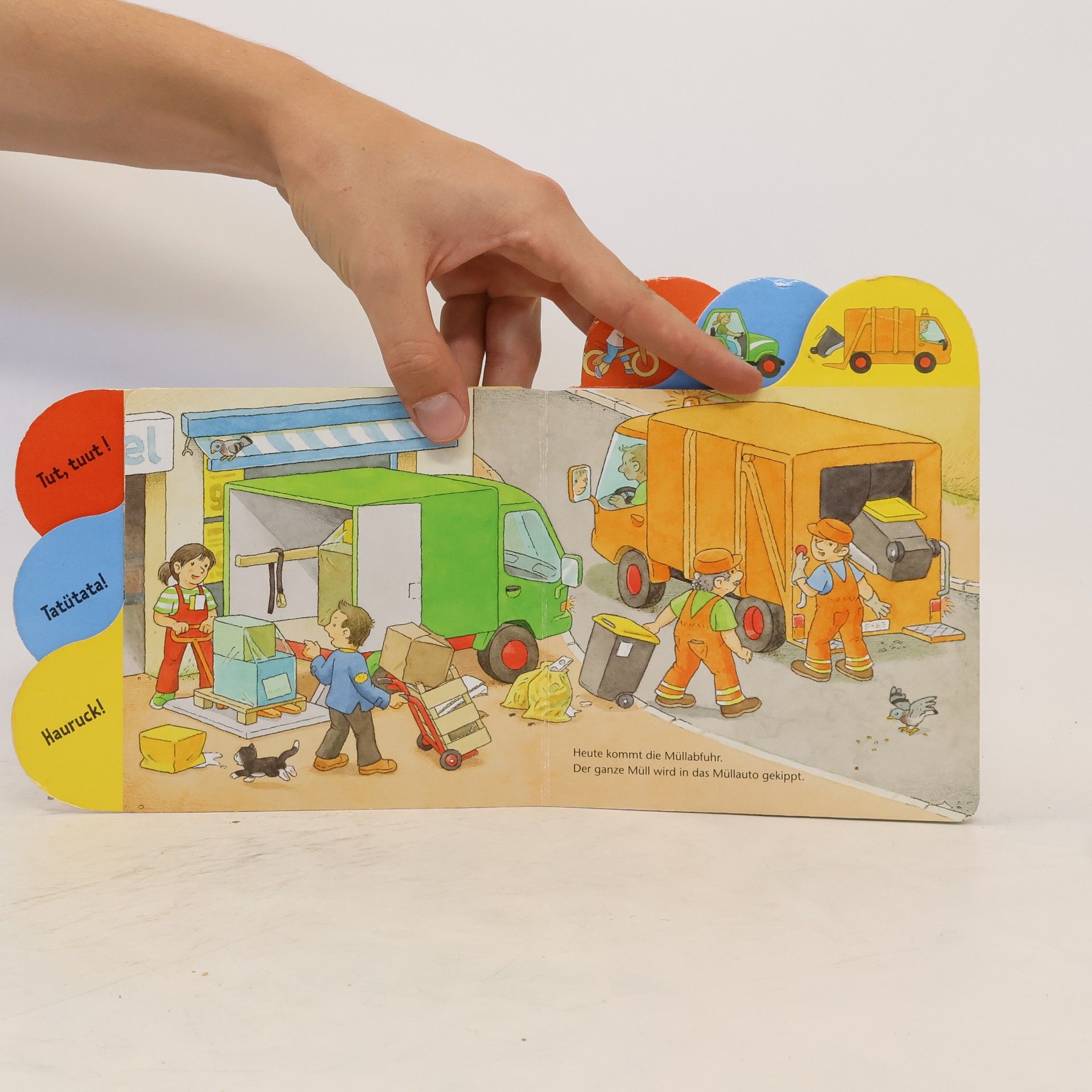 In diesem Buch werden in klaren und farbenfrohen Illustrationen die ersten Lieblingsfahrzeuge vorgestellt: Traktor, Bagger, Bus, Müllauto, Betonmischer und viele mehr. Die detailreichen Abbildungen laden kleine Kinder zum Suchen, Entdecken und Wiedererkennen ein. Und später können Bagger, Auto und Gabelstapler dann auch benannt werden. Mit Hilfe des umlaufenden Registers können die Kleinsten schon ganz allein ihr Lieblingsfahrzeug wiederfinden. Die kurzen Texte erzählen von kleinen und großen Fahrzeugerlebnissen.
