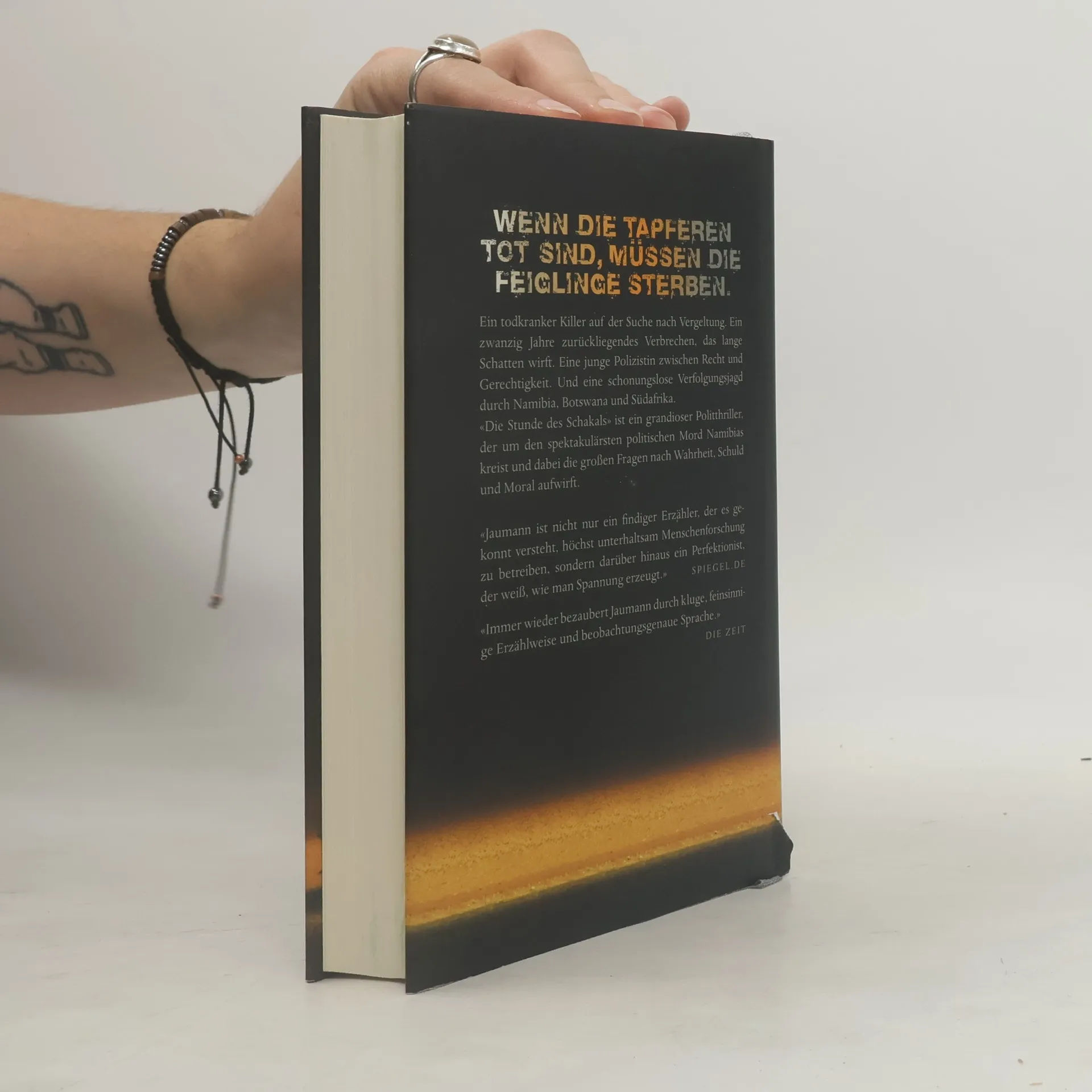 Wenn die Tapferen tot sind, müssen die Feiglinge sterben. Ein todkranker Killer auf der Suche nach Vergeltung. Ein zwanzig Jahre zurückliegendes Verbrechen, das lange Schatten wirft. Eine junge Polizistin zwischen Recht und Gerechtigkeit. Und eine schonungslose Verfolgungsjagd durch Namibia, Botswana und Südafrika. «Die Stunde des Schakals» ist ein grandioser Politthriller, der um den spektakulärsten politischen Mord Namibias kreist und dabei die großen Fragen nach Wahrheit, Schuld und Moral aufwirft. «Jaumann ist nicht nur ein findiger Erzähler, der es gekonnt versteht, höchst unterhaltsam Menschenforschung zu betreiben, sondern darüber hinaus ein Perfektionist, der weiß, wie man Spannung erzeugt.» SPIEGEL. DE «Immer wieder bezaubert Jaumann durch kluge, feinsinnige Erzählweise und beobachtungsgenaue Sprache.» DIE ZEIT