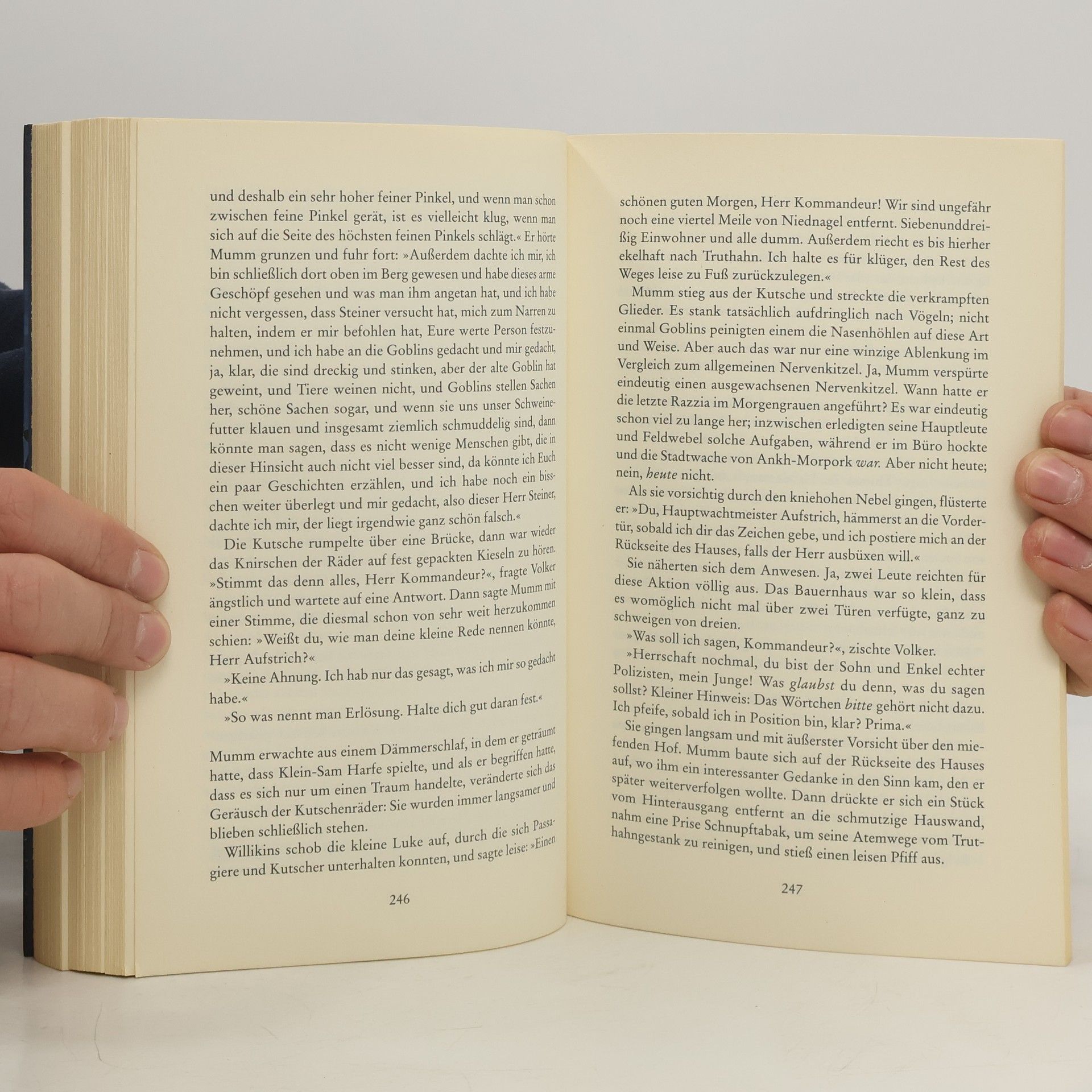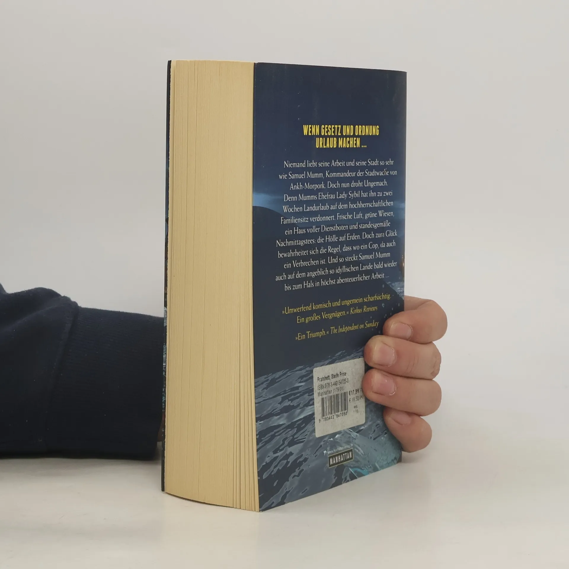 Die Welt ist eine Scheibe. Schneiden Sie sich eine neue davon ab. Das Leben ist grausam zu Samuel Mumm, Kommandeur der Stadtwache von Ankh-Morpork: Seine liebende Ehefrau Lady Sybil hat sich mit Lord Vetinari verbündet und Sam zu zwei Wochen Landurlaub auf dem hochherrschaftlichen Familiensitz verdonnert. Für den überzeugten Stadtbewohner, der zudem jede Form von Untätigkeit hasst, die Hölle auf Erden. Doch zum Glück bewahrheitet sich bald die Regel: wo ein Cop, da auch ein Verbrechen. Schnell steckt Samuel Mumm auf dem angeblich so idyllischen Lande bis zum Hals in der Aufklärung gleich mehrerer Missetaten von Drogenschmuggel bis Sklavenhandel. Wilde Fluss-Verfolgungsjagden inklusive … Klappenbroschur mit gestalteten Innenseiten und abtrennbarem Lesezeichen.
