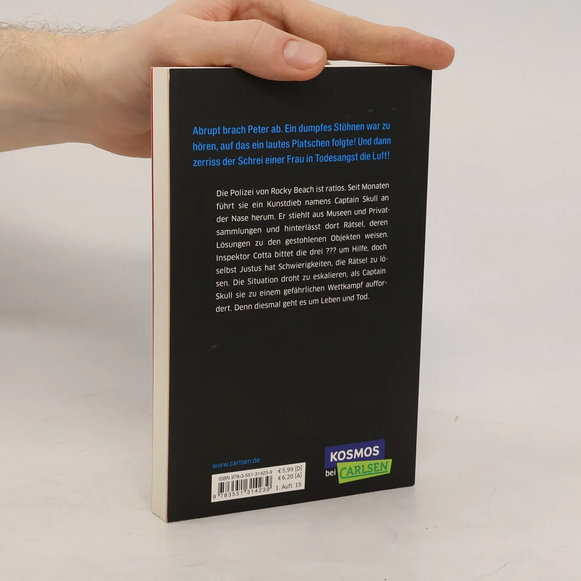 Die Polizei von Rocky Beach ist ratlos. Seit Monaten führt sie ein Kunstdieb namens Captain Skull an der Nase herum. Er stiehlt aus Museen und Privatsammlungen und hinterlässt dort ein Rätsel, dessen Lösung zu dem gestohlenen Objekt weist. Inspektor Cotta bittet die drei ??? um Hilfe, doch selbst Justus hat Schwierigkeiten, die Rätsel zu lösen. Die Situation droht zu eskalieren, als Captain Skull sie zu einem gefährlichen Wettkampf auffordert. Denn diesmal geht es um Leben und Tod.