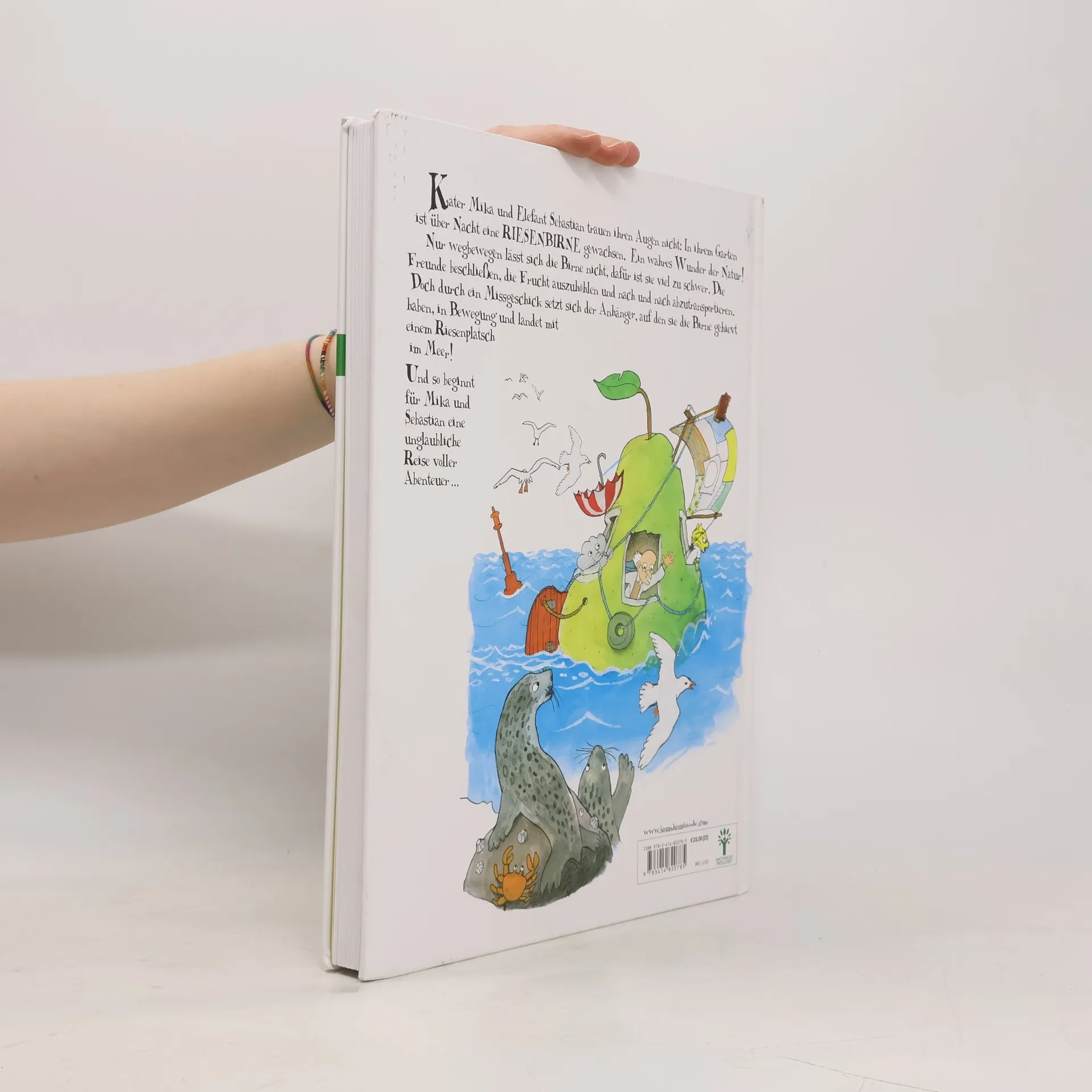 Beim Angeln finden Kater Mika und Elefant Sebastian eine Flaschenpost mit einem geheimnisvollen Samenkorn darin. Sie pflanzen ihn ein und über Nacht wächst daraus eine gigantische Riesenbirne, die sich auf ihrem Grundstück breitmacht. Ein Wunder der Natur, mit dem ein rasantes Abenteuer seinen Lauf nimmt. Nur wegbewegen lässt sich die Birne nicht - so schwer, wie sie ist. Auch Professor Glykose befasst sich mit der Sache und kurzerhand wird beschlossen, die Frucht auszuhöhlen und nach und nach abzutransportieren. Doch durch ein Missgeschick setzt sich der Anhänger, auf den die Freunde die ausgehöhlte Birne gehievt haben, in Bewegung und rumpelt mit viel Getöse den Berg hinab. Mit einem Riesenplatsch landet sie im Meer! Dort treibt die Birne samt Mika, Sebastian und Professor Glykose an Bord einer abenteuerlichen Reise entgegen ...