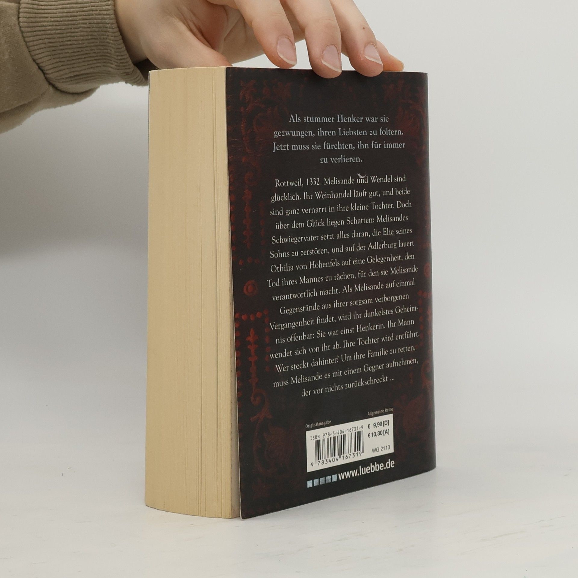 Rottweil, 1332. Melisande und Wendel sind glücklich. Ihr Weinhandel läuft gut, und beide sind ganz vernarrt in ihre kleine Tochter. Doch über dem Glück liegen Schatten: Melisandes Schwiegervater setzt alles daran, die Ehe seines Sohns zu zerstören, und auf der Adlerburg lauert eine alte Feindin auf eine Gelegenheit, den Tod ihres Mannes zu rächen. Als Melisande auf einmal Gegenstände aus ihrer Vergangenheit findet, wird ihr dunkelstes Geheimnis offenbar: Sie war einst Henkerin. Ihr Mann wendet sich von ihr ab. Ihre Tochter wird entführt. Wer steckt dahinter? Um ihre Familie zu retten, muss Melisande es mit einem Gegner aufnehmen, der vor nichts zurückschreckt ...