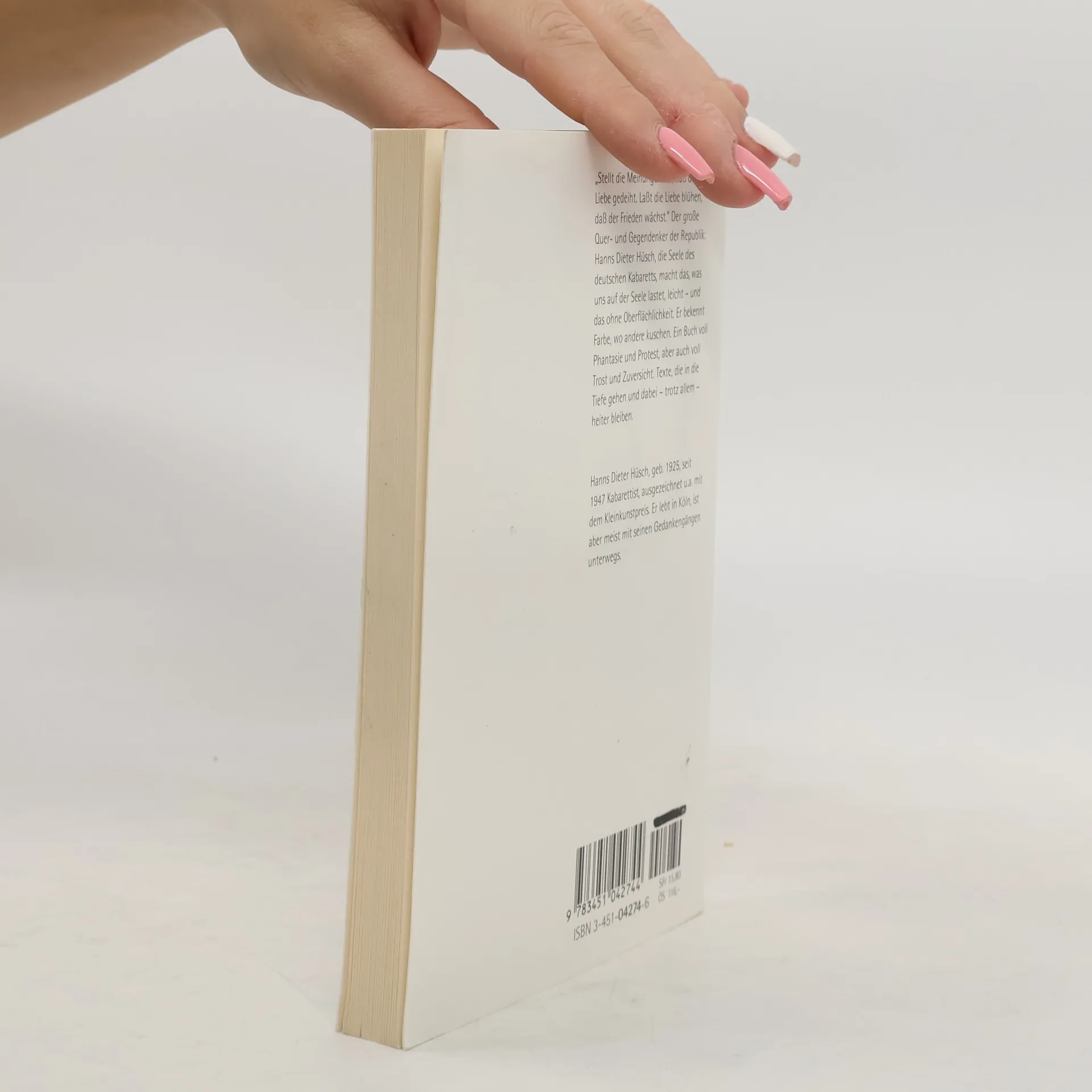 * Die besten Texte von Hanns Dieter Hüsch * Bisher 40.000 verkaufte Exemplare »Stellt die Meinungen ein, dass die Liebe gedeiht. Lasst die Liebe blühen, dass der Frieden wächst.« Der große Quer- und Gegendenker der Republik: Hanns Dieter Hüsch, die Seele des deutschen Kabaretts, macht das, was uns auf der Seele lastet, leicht - und das ohne Oberflächlichkeit. Er bekennt Farbe, wo andere kuschen. Ein Buch voller Phantasie und Protest, aber auch voll Trost und Zuversicht. Texte, die in die Tiefe gehen und dabei - trotz allem - heiter bleiben.