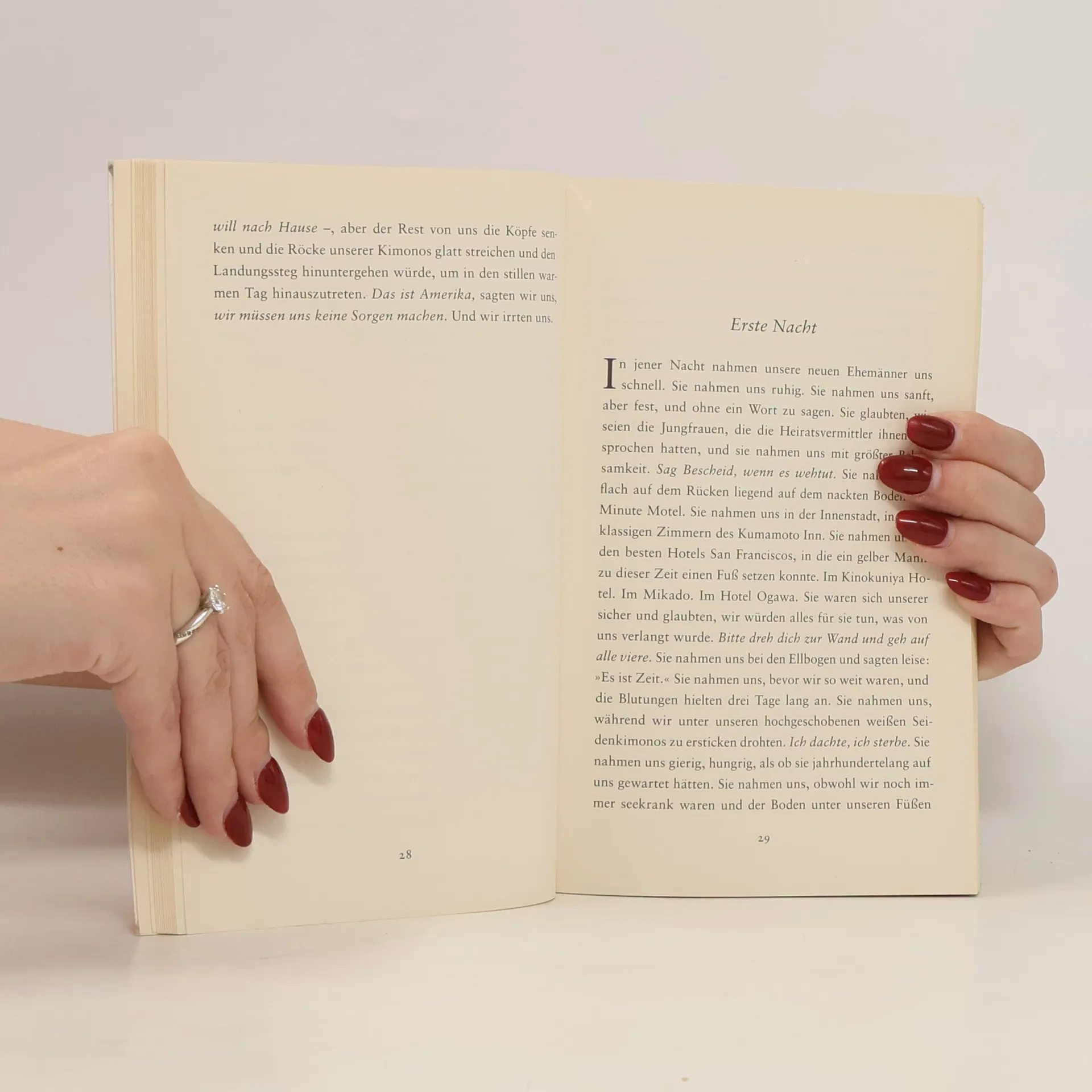 Die bewegende Geschichte einer Gruppe von Frauen auf einer Reise ins Ungewisse ... Mit leiser Wehmut, vielen Fragen und großen Hoffnungen im Gepäck überqueren sie den Ozean: junge Japanerinnen, die Anfang des 20. Jahrhunderts ihre Heimat verlassen, um in Kalifornien japanische Einwanderer zu heiraten. Bis zu ihrer Ankunft kennen die Frauen ihre zukünftigen Männer nur von den strahlenden Fotos der Heiratsvermittler, und auch sonst haben sie äußerst vage Vorstellungen von Amerika. Die Überfahrt wird zu einer seltsamen, oft traumartigen Passage zwischen zwei Welten – und die Ankunft in Amerika zu einem abrupten Erwachen in der Fremde, in der kaum etwas so ist wie erwartet ...