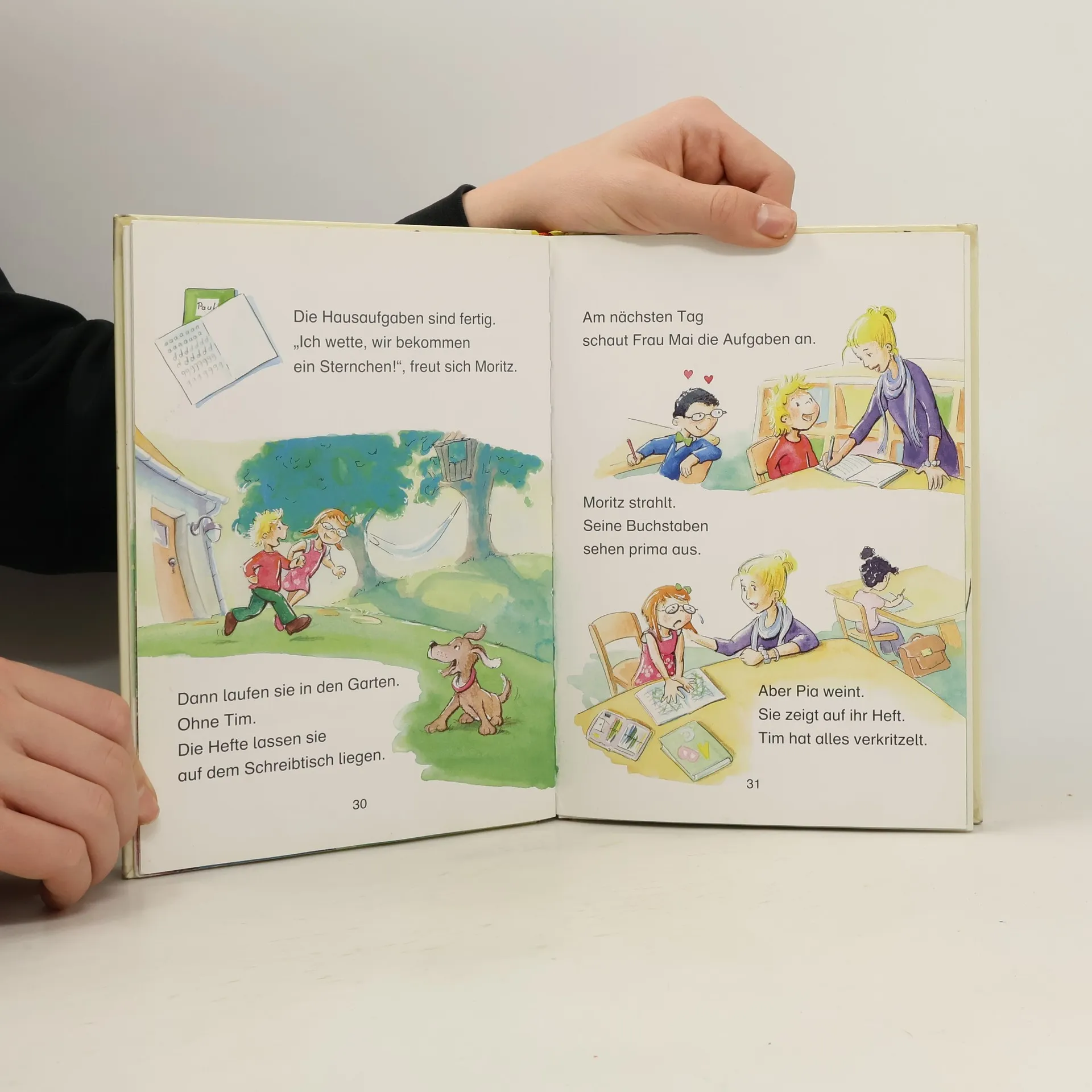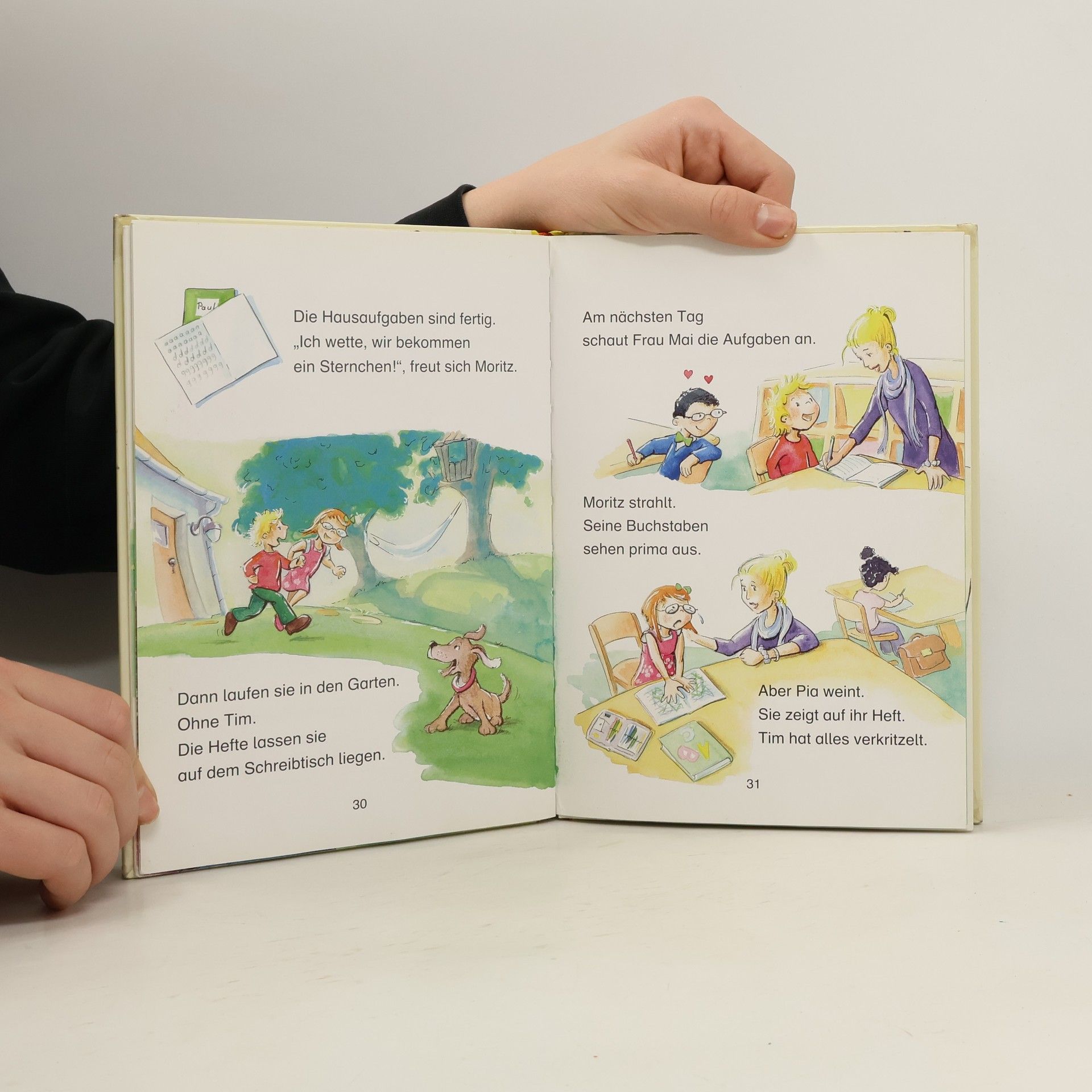 Pia und Moritz sind beste Freunde und wollen in dieselbe Klasse! Das ist ausgemacht. Auch auf dem Pausenhof halten sie zusammen, als Billi sie aus dem Kletterbaum vertreiben will. Die beiden machen zusammen ihre Hausaufgaben und bekommen jeder ein Sternchen in ihre Hefte. Zusammen macht die Schule einfach doppelt Spaß!