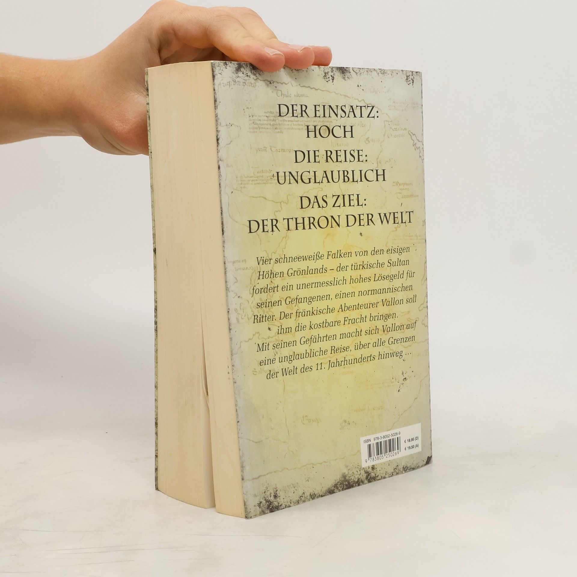 Man schreibt das Jahr 1072 nach Christi Geburt. Der fränkische Krieger Vallon hat nichts mehr zu verlieren. In den Alpen begegnet er dem jungen Gelehrten Hero, unterwegs mit seinem Meister. Als dieser stirbt, bittet Hero Vallon um seine Begleitung nach England, wo er einem normannischen Ritter die Lösegeldforderung des türkischen Sultans für seinen Sohn überbringen soll. Doch der Preis für die Freiheit des jungen Sir Walter Olbec ist unermesslich hoch: vier weiße Gerfalken, kostbare Vögel, die überaus selten sind. Nur hoch im Norden, im ewigen Eis, hat man schon Exemplare davon gesehen. Für Vallon, Hero und ihre Gefährten beginnt eine atemberaubende Odyssee durch die entlegensten Länder der Welt – von Grönland über Russland bis nach Konstantinopel, über das tobende Nordmeer und blutgetränkte Schlachtfelder. Grausame Wikingerkrieger und rachsüchtige Normannen stellen sich ihnen in den Weg, wilde Flüsse und unwegsame Pfade gilt es zu überwinden, bis sie endlich ans Ziel kommen – und die Welt plötzlich nicht mehr so ist, wie sie einmal war …