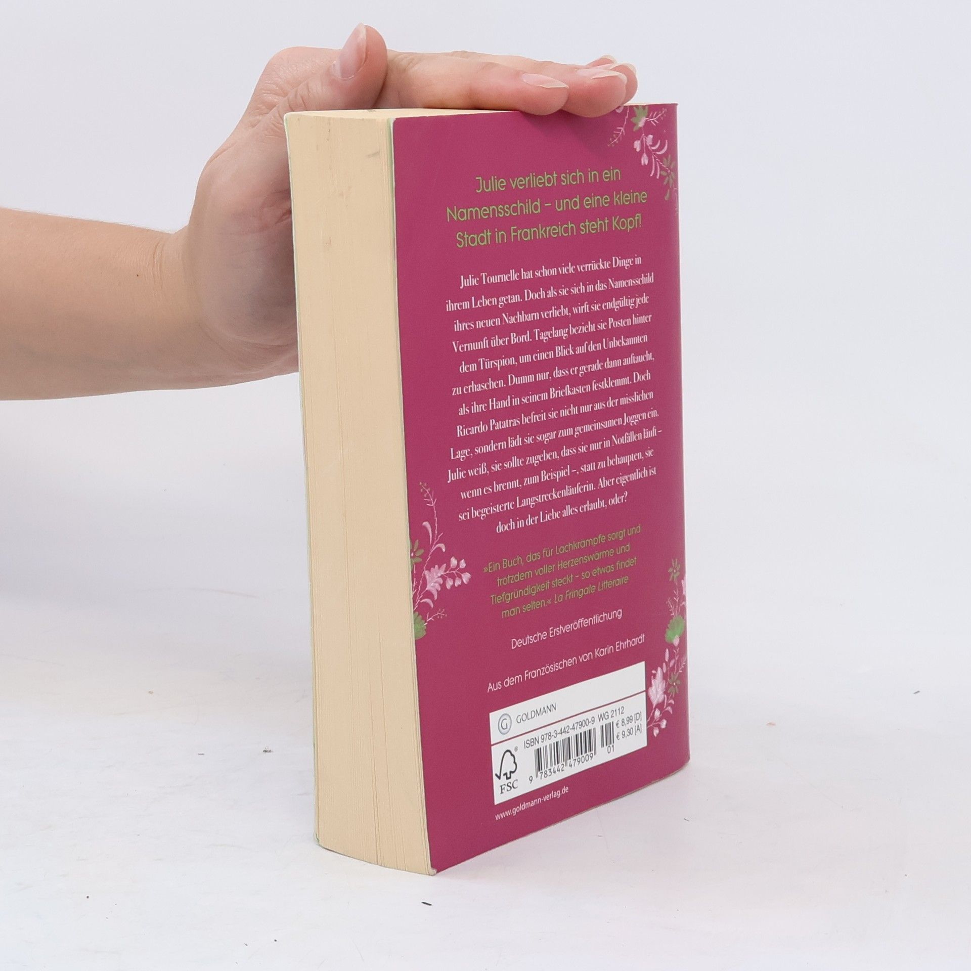 Julie verliebt sich in ein Namensschild – und eine kleine französische Stadt steht Kopf! Julie Tournelle hat schon viele verrückte Dinge in ihrem Leben getan. Doch als sie sich in das Namensschild ihres neuen Nachbarn verliebt, wirft sie endgültig jede Vernunft über Bord. Tagelang bezieht sie Posten hinter dem Türspion, um einen Blick auf den Unbekannten zu erhaschen. Dumm nur, dass er gerade dann auftaucht, als ihre Hand in seinem Briefkasten festklemmt. Doch Ricardo befreit sie nicht nur aus der misslichen Lage, sondern lädt sie sogar zum gemeinsamen Joggen ein. Julie weiß, sie sollte zugeben, dass sie nur in Notfällen läuft – wenn es brennt, oder ein kleiner böser Köter sie verfolgt – statt zu behaupten, sie sei begeisterte Langstreckenläuferin. Aber eigentlich ist doch in der Liebe alles erlaubt, oder?