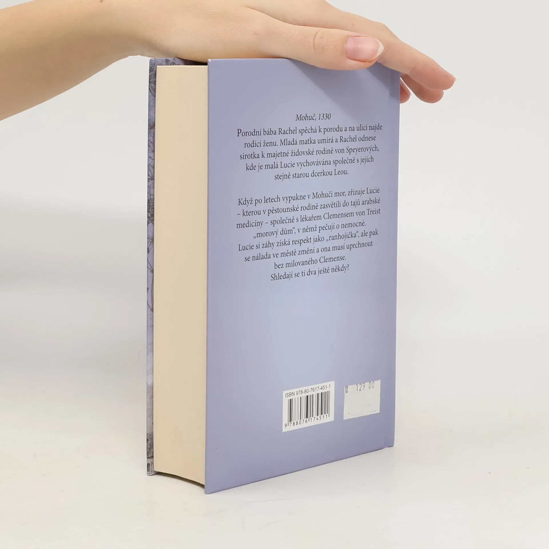 Mohuč, 1330. — Porodní bába Rachel spěchá k porodu a na ulici najde rodící ženu. Mladá matka umírá a Rachel přinese sirotka k majetné rodině von Speyerových, kde je Lucie vychovávána společně se stejně starou Leou. Když po letech vypukne v Mohuči mor, zřizuje Lucie – která byla v domě von Speyerů zasvěcena do tajů arabské medicíny – společně s morovým lékařem Clemensem von Treist „morový dům“, v němž pečují o nemocné. Lucie si brzy získá úctu jako „ranhojička“, ale pak se nálada ve městě změní a ona musí uprchnout bez milovaného Clemense. Najdou se ti dva ještě někdy?