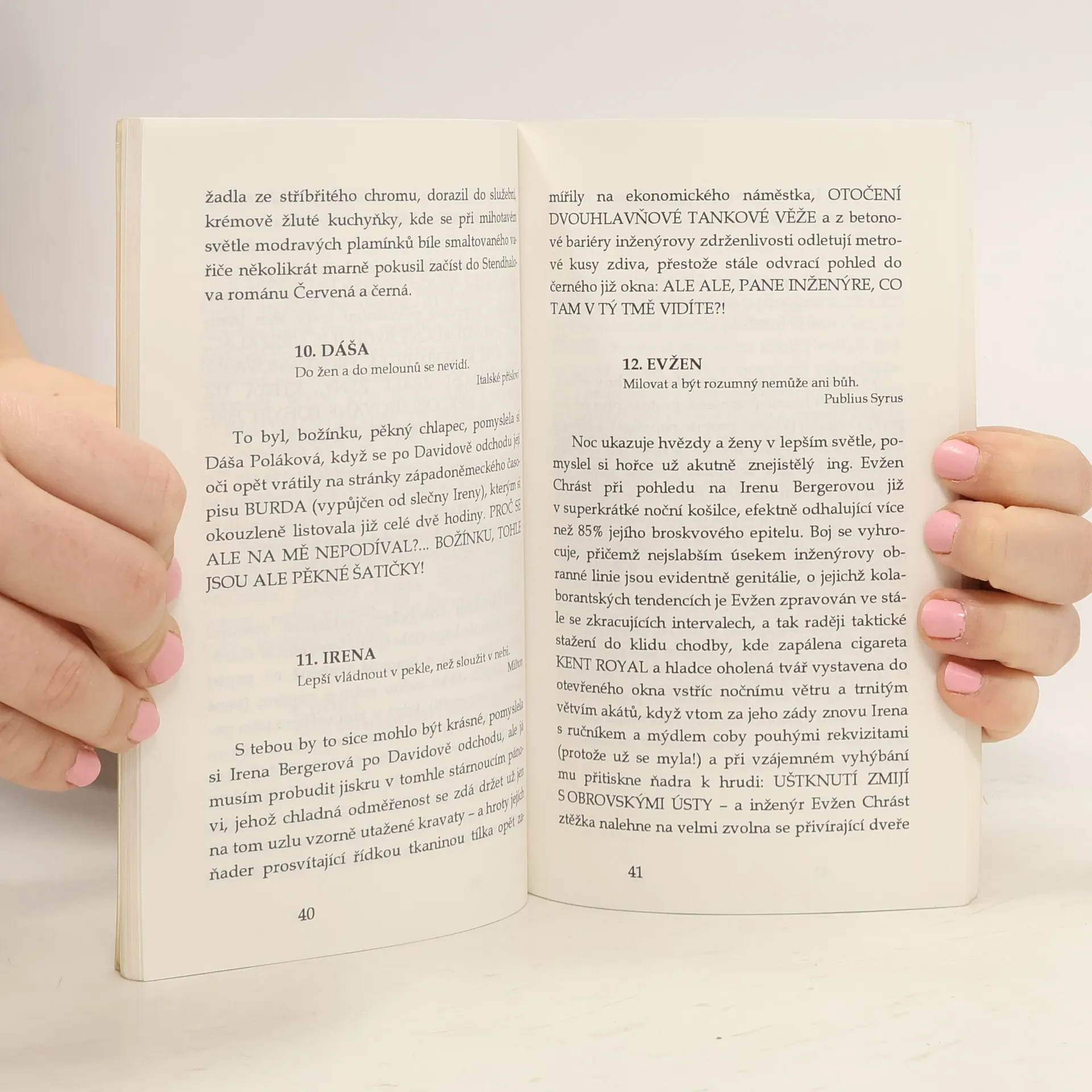 Rozverně nactiutrhačné literární parodie, v nichž Michal Viewegh se svým pověstným nadhledem napodobuje styl jedenácti českých a deseti světových autorů.