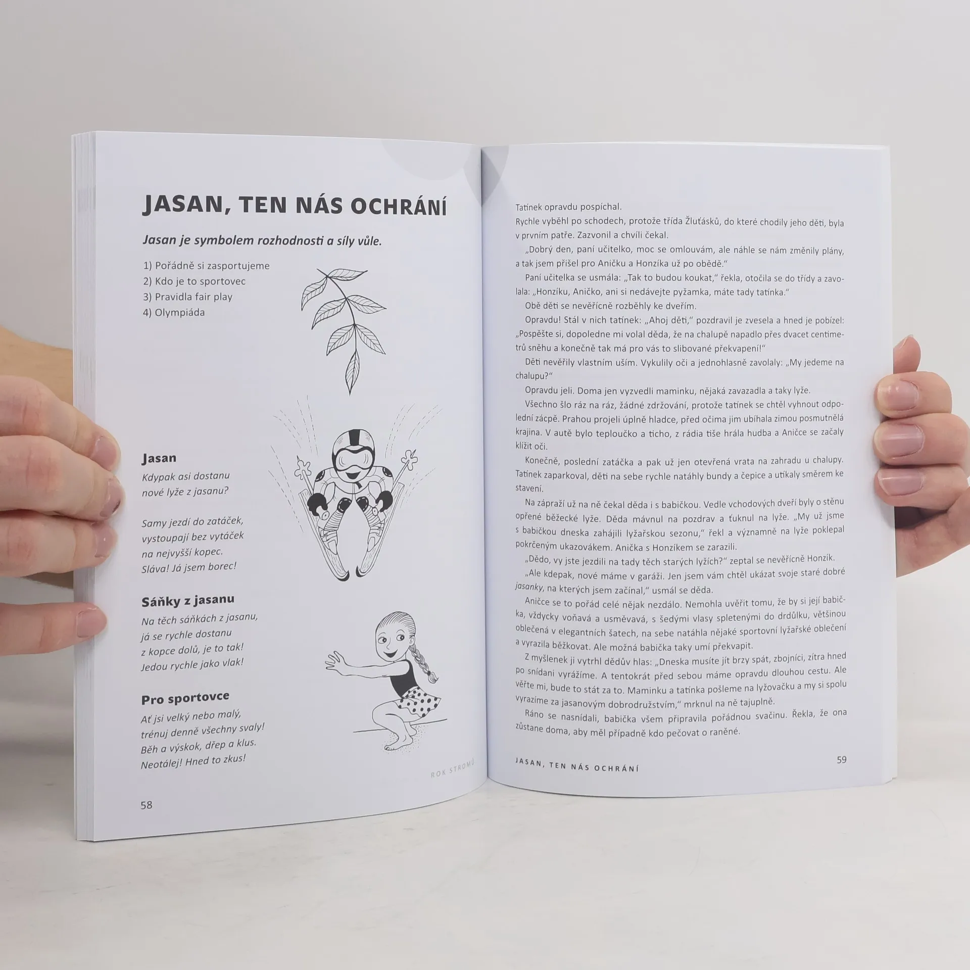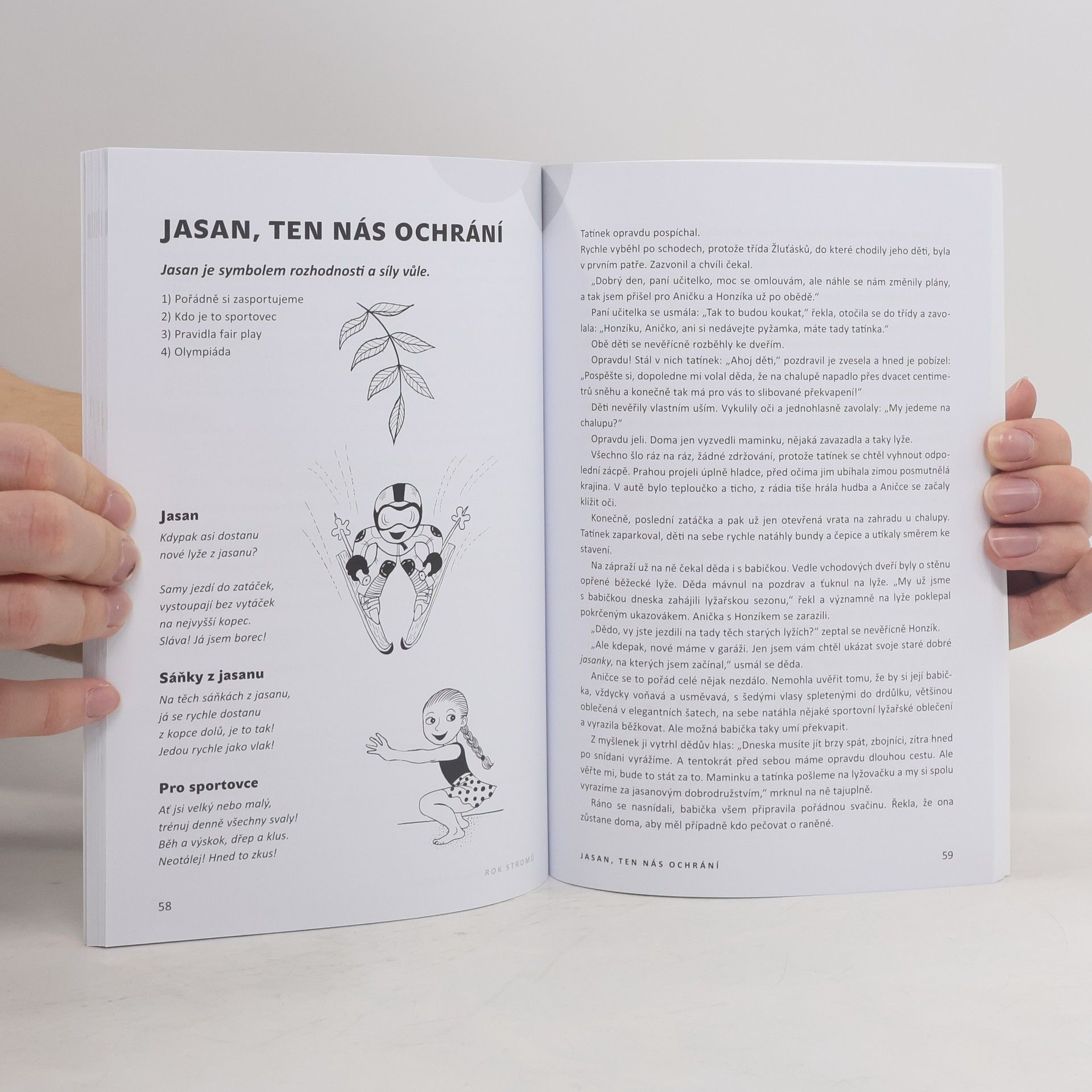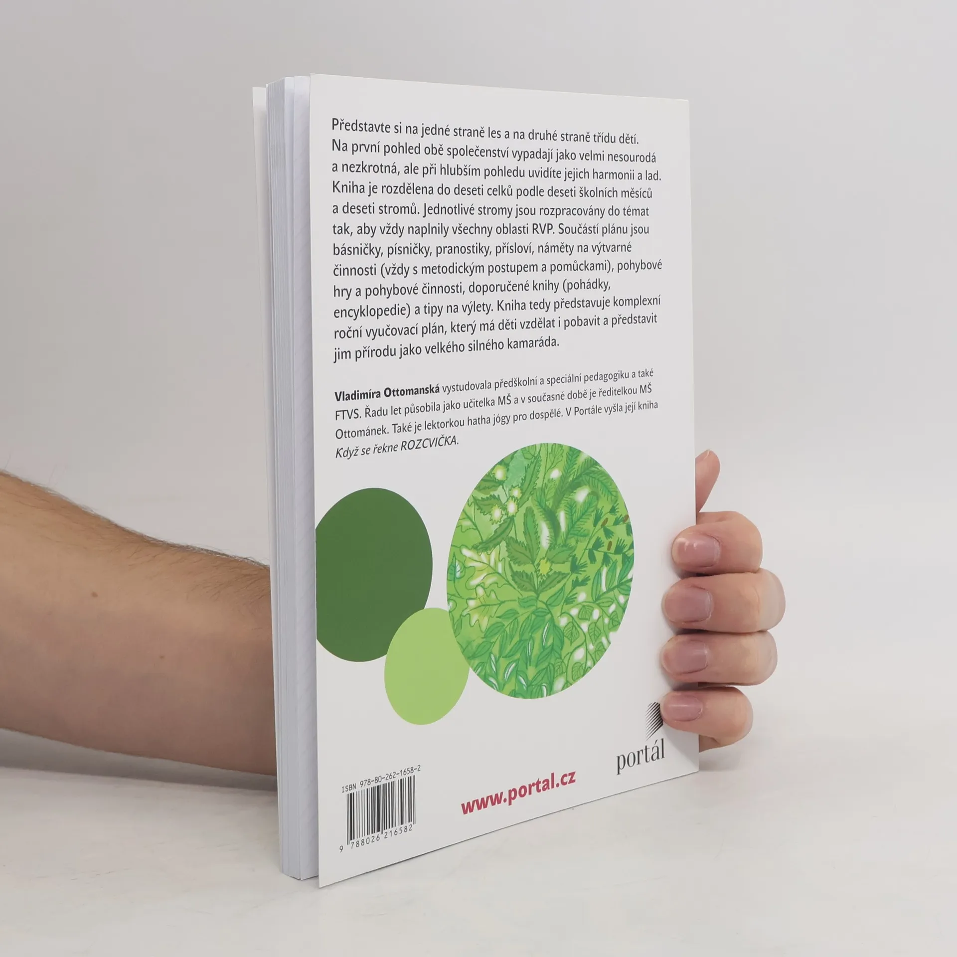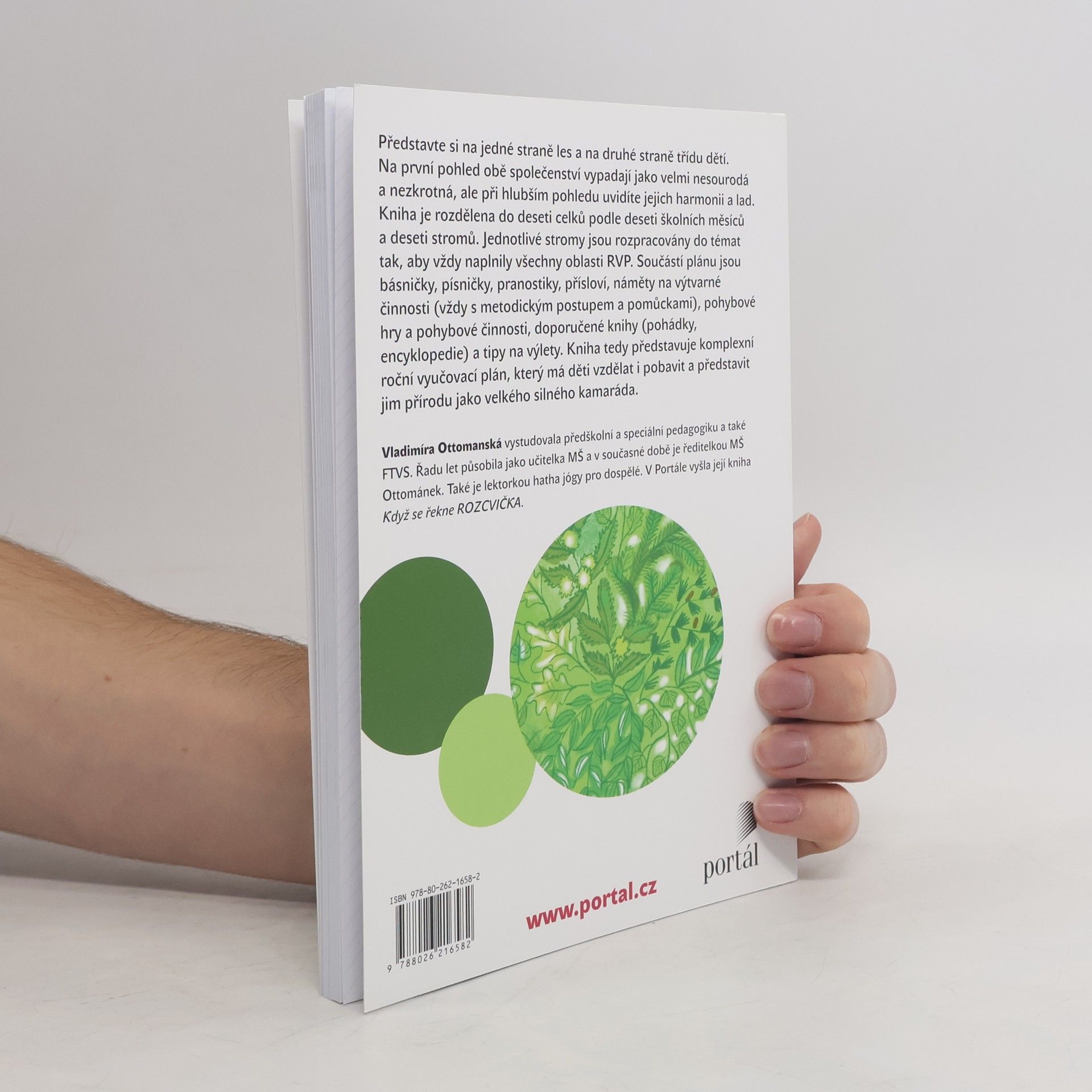 Celoroční program pro MŠ. Kniha je dělena do deseti celků podle deseti školních měsíců a podle deseti stromů. Jednotlivé stromy jsou v knize rozpracovány do témat tak, aby vždy naplnily všechny oblasti RVP. Součástí plánu jsou básničky, písničky, pranostiky, přísloví, náměty na výtvarné činnosti (vždy s metodickým postupem a pomůckami), pohybové hry a pohybové činnosti, doporučené knihy (pohádky, encyklopedie) a tipy na výlety. Kniha tedy představuje komplexní roční vyučovací plán, který má děti vzdělat a pobavit a představit jim přírodu jako velkého silného kamaráda. Stromy jsou tu s námi od nepaměti. Mají svá tajemství, kouzla a sílu. Život bez stromů si již neumíme představit. Bez nich bychom nemohli dýchat, v horkém slunci bychom se neměli kde schovat, nepochutnali bychom si na sladkých a šťavnatých plodech, neuvařili bychom si lahodný léčivý čaj. Jak bychom žili bez dřeva? A co teprve zvířata, hmyz a ptáci? Ještě, že tu s námi žijí. Slyšíte jejich ševelení? Možná, že když se dobře zaposloucháme, prozradí nám víc ze svého tajuplného života. Tak pojďme poslouchat…