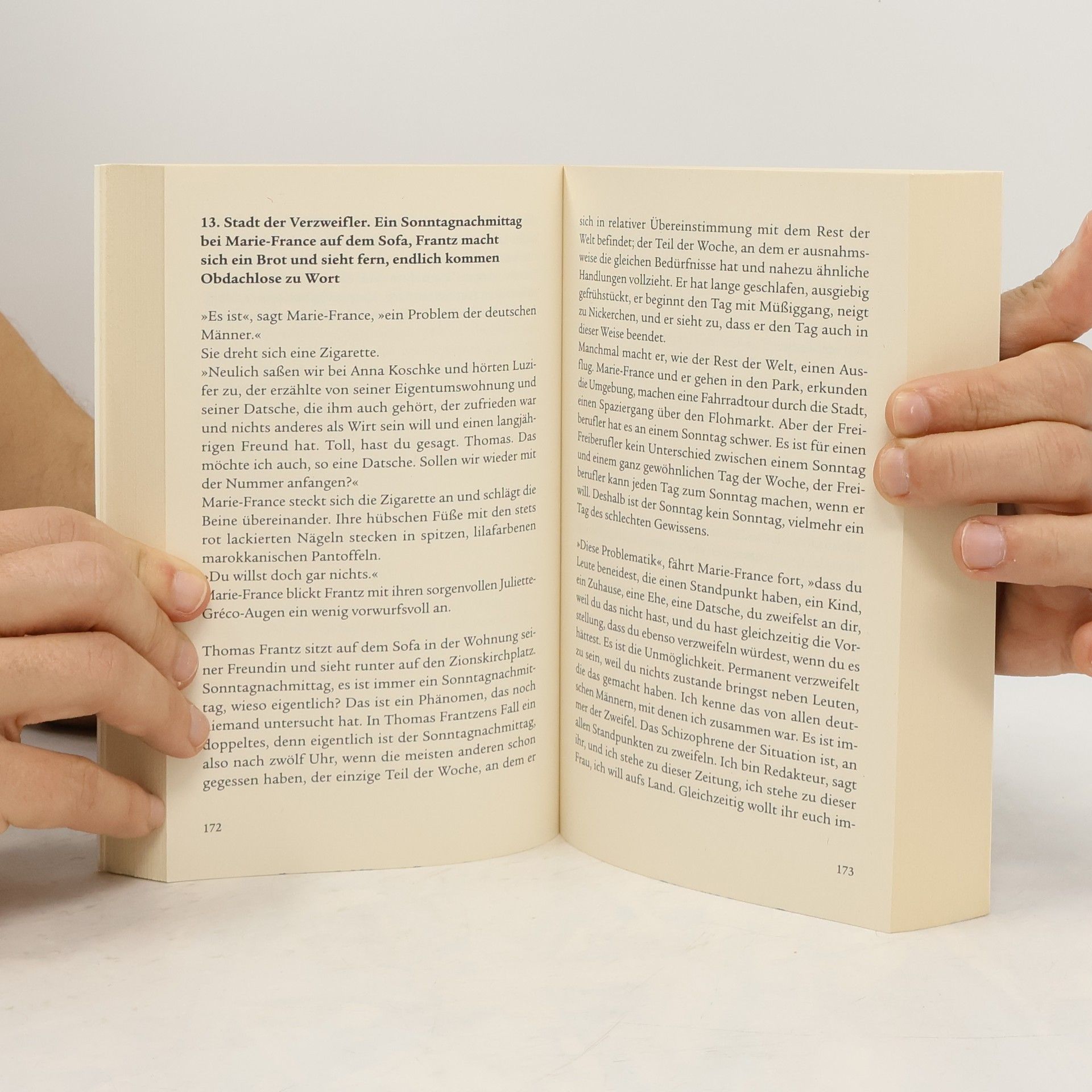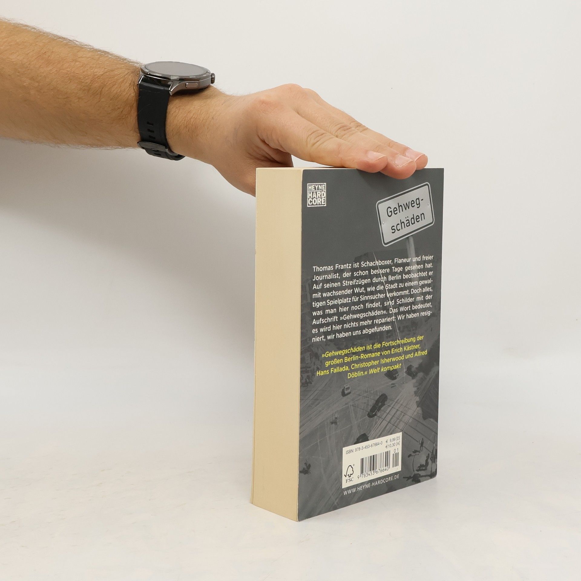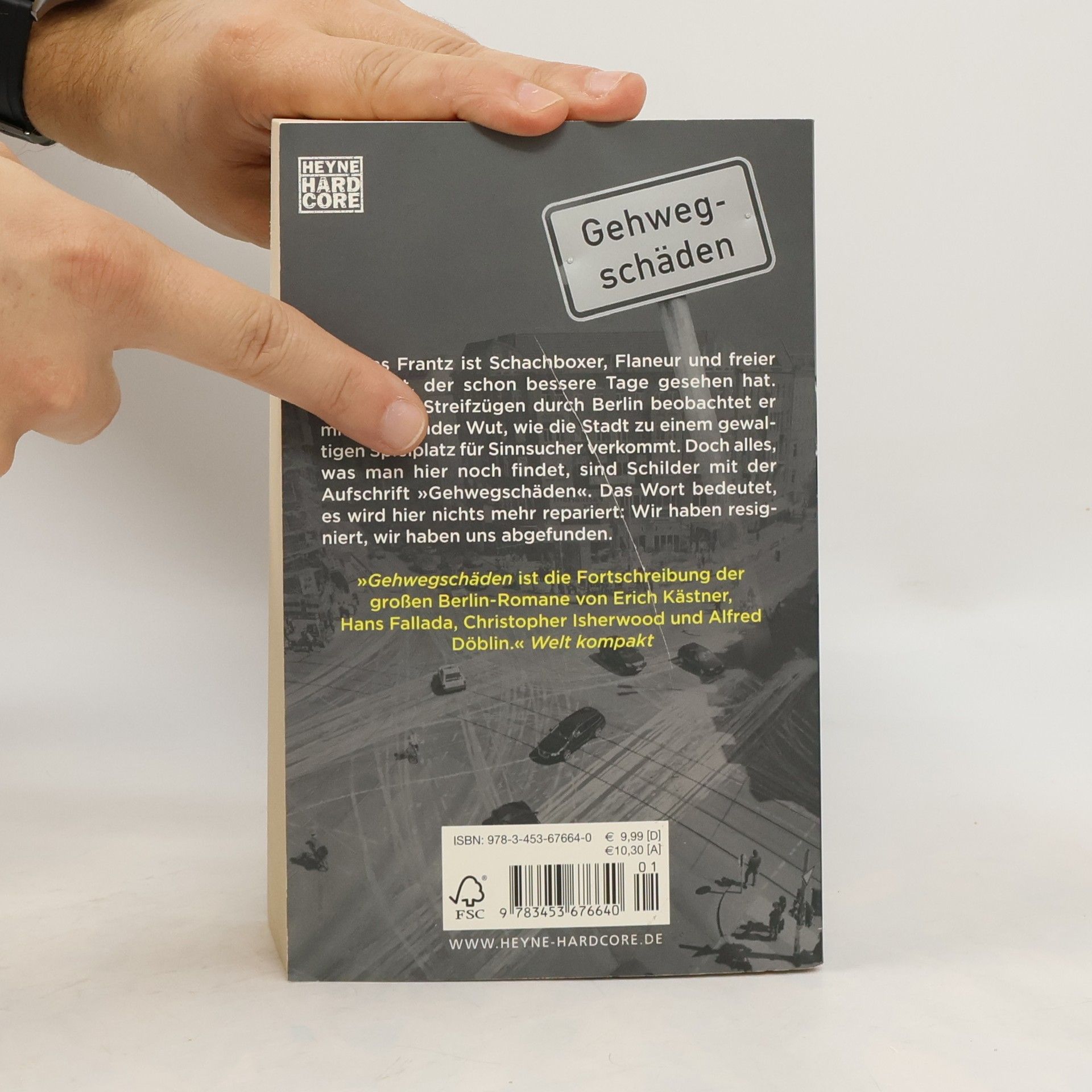 Berlin, das ist die Welt im deutschen ReagenzglasThomas Frantz ist Schachboxer, Spaziergänger und freier Journalist, der schon bessere Tage gesehen hat. Auf seinen Streifzügen beobachtet er mit wachsender Wut, wie Berlin zu einem gewaltigen Spielplatz der Sinnsucher verkommt. Doch alles, was man hier noch findet, sind Schilder mit der Aufschrift »Gehwegschäden«. Das Wort bedeutet, es wird hier nichts mehr repariert: Wir haben uns abgefunden.