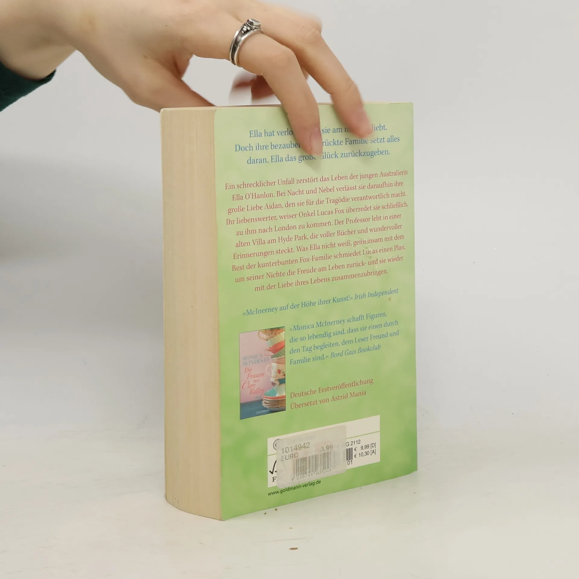 Der neue grosse Familienroman der australischen Bestsellerautorin Ein schrecklicher Unfall zerstört das Leben der jungen Australierin Ella O'Hanlon. Bei Nacht und Nebel verlässt sie daraufhin ihre grosse Liebe Aidan, den sie für die Tragödie verantwortlich macht. Ihr liebenswerter, weiser Onkel Lucas Fox überredet sie schliesslich, zu ihm nach London zu kommen. Der Professor lebt in einer alten Villa am Hyde Park, die voller Bücher und wundervoller Erinnerungen steckt. Was Ella nicht weiss, gemeinsam mit dem Rest der kunterbunten Fox-Familie schmiedet Lucas einen Plan, um seiner Nichte die Freude am Leben zurück- und sie wieder mit der Liebe ihres Lebens zusammenzubringen. Monica McInerney ist mit ihren sechs Geschwistern in Clare Valley in Australien aufgewachsen. Ihre Romane stehen sowohl dort als auch in ihrer neuen Heimat Irland immer wieder auf den Bestsellerlisten. Für "Die Töchter der Familie Faraday" wurde ihr in Australien die Auszeichnung "General Fiction Book of the Year" verliehen, und auch für "Die Frauen von Clare Valley" und "Das Haus am Hyde Park" war sie wieder nominiert. Zurzeit lebt sie mit ihrem Mann in Dublin.
