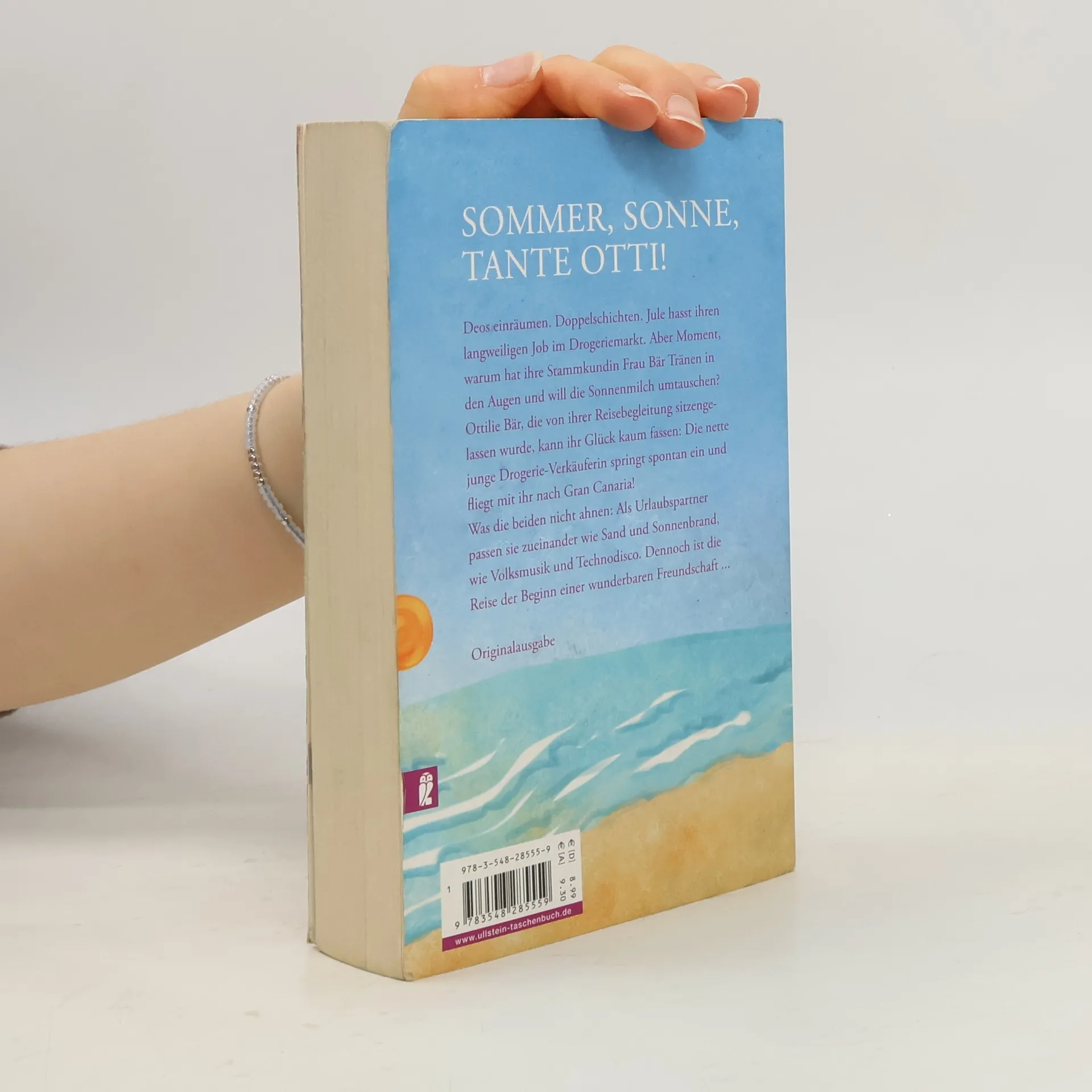 Deos einräumen. Doppelschichten. Jule hasst ihren langweiligen Job im Drogeriemarkt. Aber Moment, warum hat ihre Stammkundin Tränen in den Augen und will die Sonnenmilch umtauschen? Ottilie Bär, die von ihrer Reisebegleitung sitzen gelassen wurde, kann ihr Glück kaum fassen: Die nette junge Drogerie-Verkäuferin springt ein und fliegt mit ihr nach Gran Canaria! Was die beiden nicht ahnen: Als Urlaubspartner passen sie zueinander wie Sand und Sonnenbrand, wie Volksmusik und Technodisco. Dennoch ist die Reise der Beginn einer wunderbaren Freundschaft ...