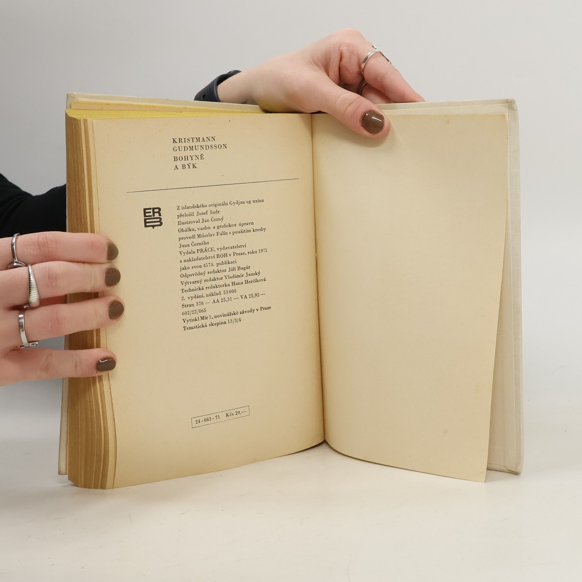Bohyně a býk, Kristmann Gudmundsson, Josef Indr