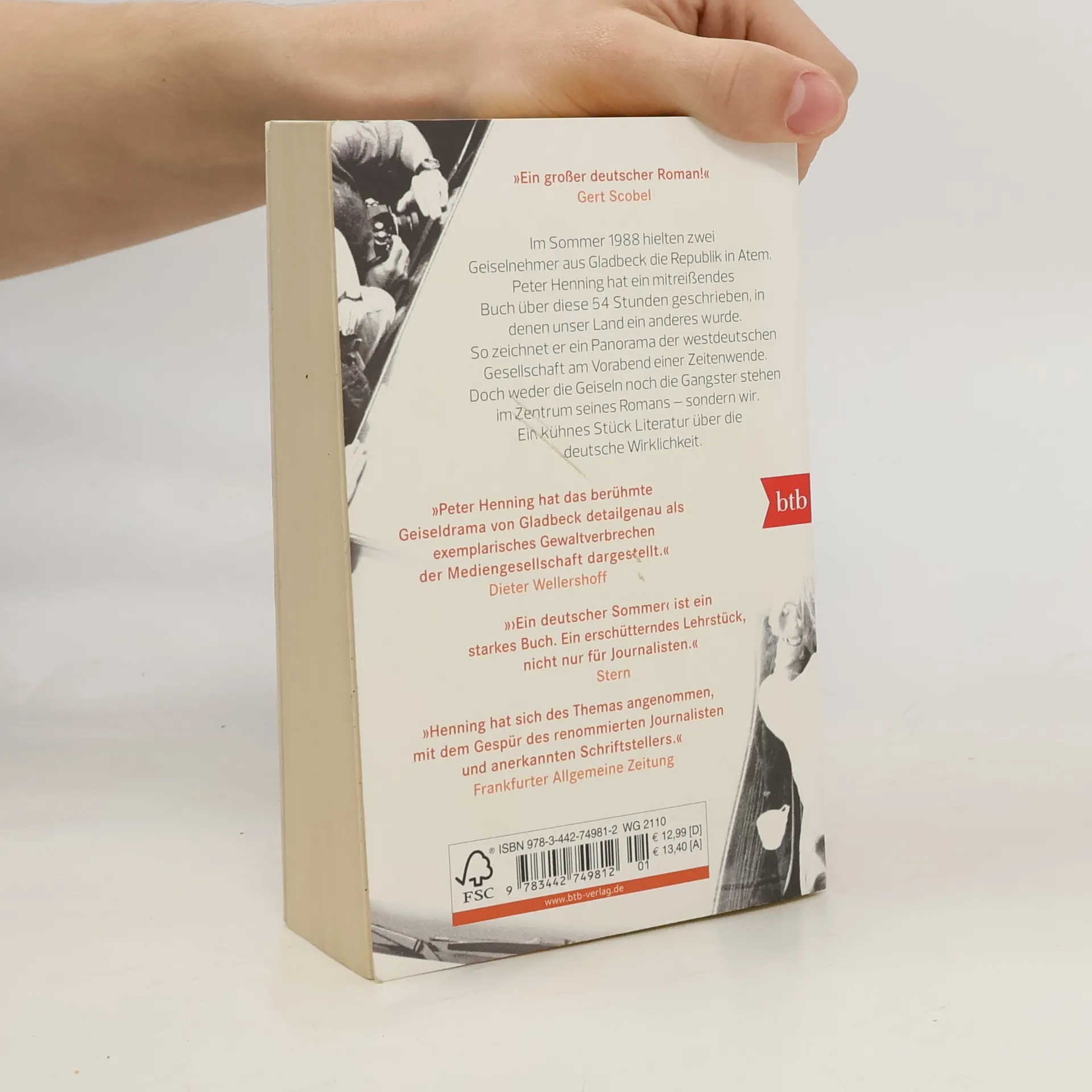 Ein kühnes Stück Literatur über die deutsche Wirklichkeit. Am 16. August 1988 überfallen zwei Kriminelle die Filiale der Deutschen Bank in Gladbeck - es folgt die wohl spektakulärste Geiselnahme der deutschen Nachkriegsgeschichte. Gejagt von einer Journalistenhorde, fliehen sie durchs Land, töten vor laufenden Kameras und werden interviewt, während die Geiseln in Lebensgefahr schweben - ein Sündenfall des Journalismus, ein Offenbarungseid der Polizei. Peter Henning erzählt von Männern und Frauen, die binnen 54 Studen an den Rand ihrer Existenz gebracht werden und sich entscheiden müssen: für ein richtiges oder ein falsches Leben.