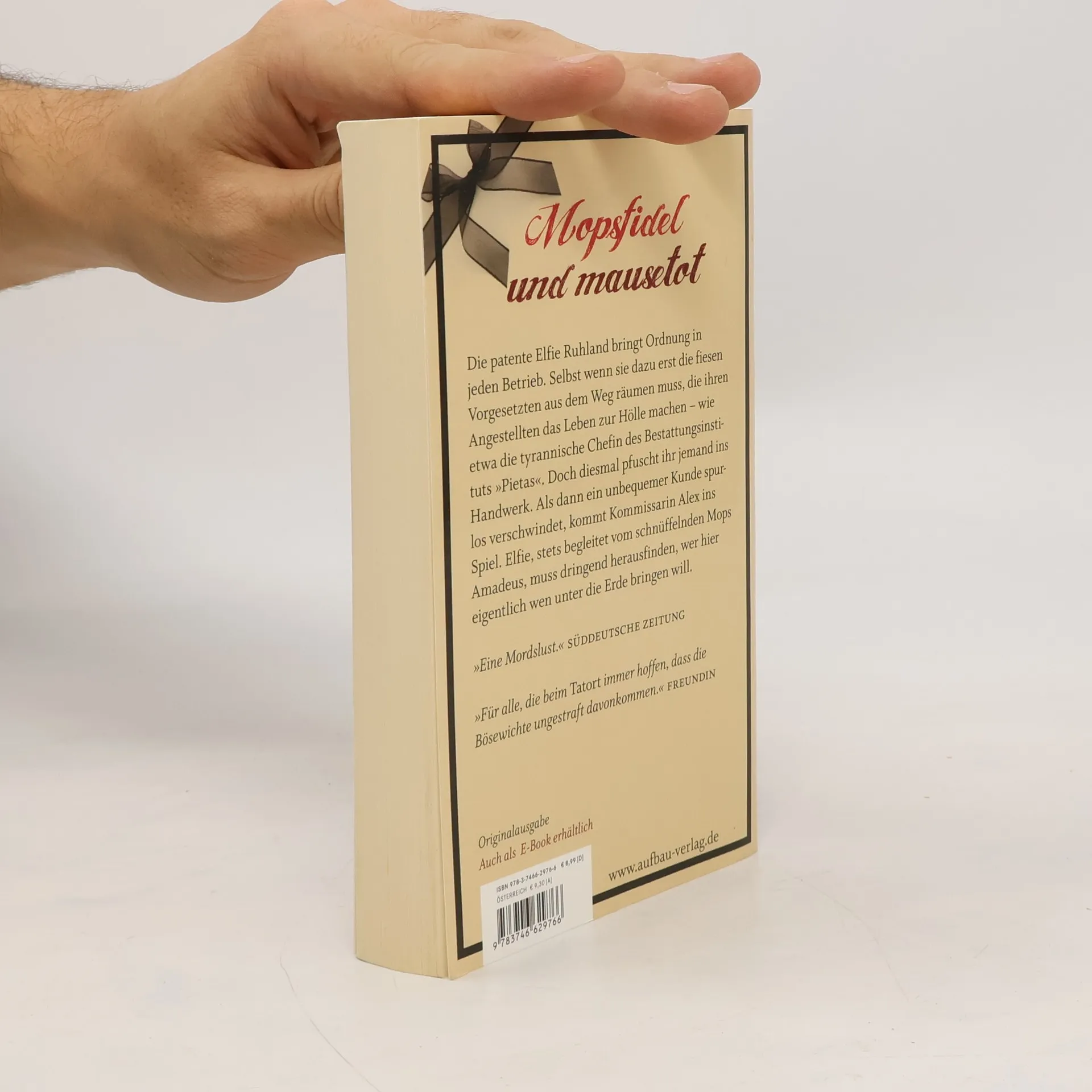 Mopsfidel & mausetot Bei ihrem zweiten Auftritt soll Elfie Ruhland Ordnung in die chaotischen Steuerunterlagen der „Pietas“ bringen, einer erfolgreichen Bestatterkette, die von der herrischen Juliane Knörringer geleitet wird. Diese hält ihren erwachsenen Sohn Carlos an der kurzen Leine und terrorisiert ihre Angestellten nach allen Regeln der Despotenkunst. Doch nicht nur das: Elfie findet heraus, dass die Knörringer sich nicht zu schade ist, ihre trauernden Kunden aufs Fieseste übers Ohr zu hauen. Als dann ein aufgebrachter Witwer verschwindet, kommt Kommissarin Alex ins Spiel. Elfie gerät unter Verdacht und beginnt, eigene Nachforschungen anzustellen. Stets im Schlepptau hat sie dabei Amadeus, den verzogenen und übergewichtigen Pflege-Mops, der sie mit seiner pfiffigen Spürnase tatkräftig unterstützt. „Eine Mordslust.“ Süddeutsche Zeitung „Für alle, die beim Tatort immer hoffen, dass die Bösewichte ungestraft davonkommen.“ FREUNDIN