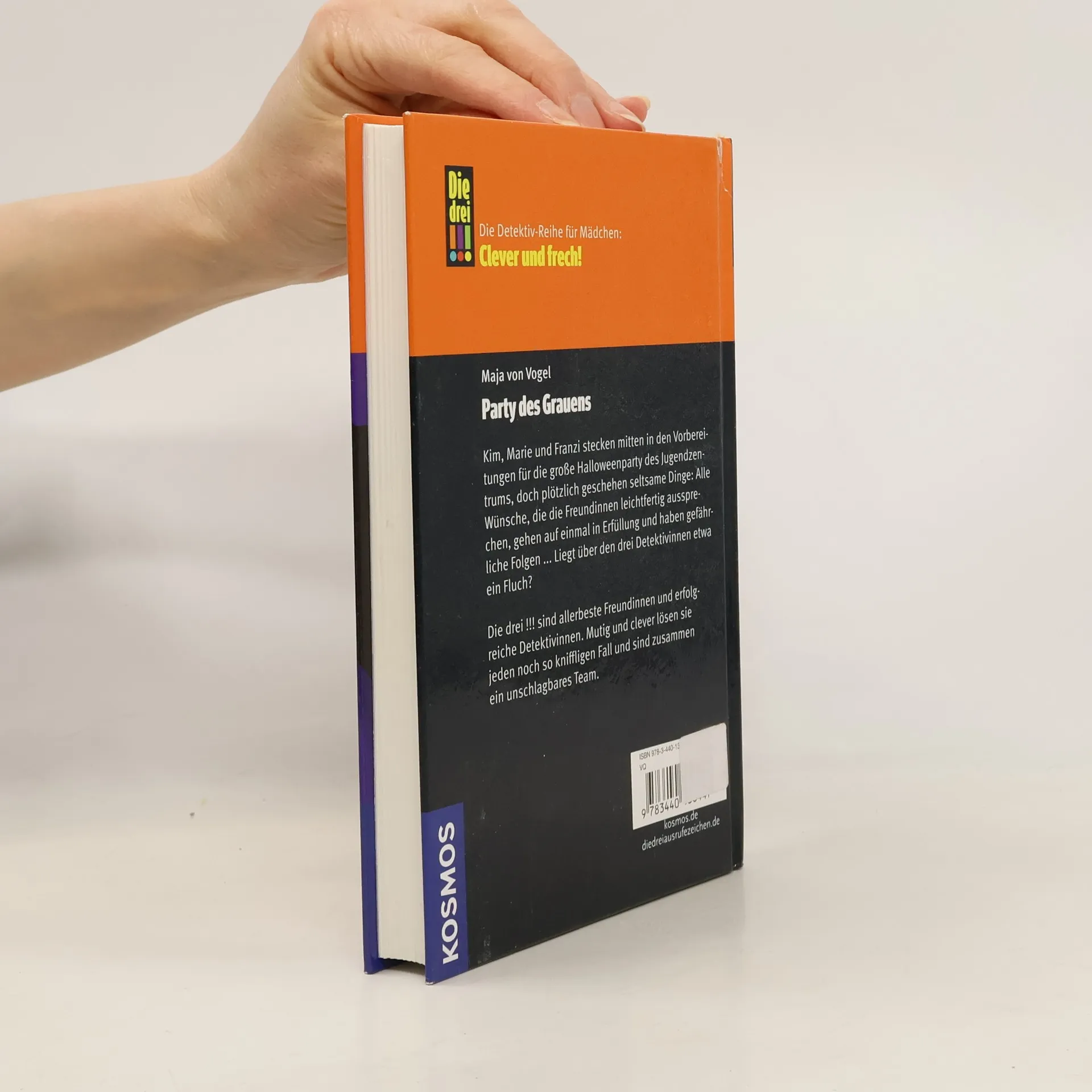 Kim, Franziska und Marie sind „Die drei !!!". Mutig und clever ermitteln die drei Mädchen und sind jedem Fall gewachsen! Kim, Marie und Franzi stecken mitten in den Vorbereitungen für die große Halloweenparty des Jugendzentrums, doch plötzlich passieren seltsame Dinge: Alle Wünsche, die die drei aussprechen, gehen auf einmal in Erfüllung! Leichtfertig dahingesagte Dinge haben plötzlich ungeahnte gefährliche Folgen ... Lastet ein Fluch auf den drei Detektivinnen? Neben der spannenden Detektivarbeit müssen Kim, Franziska und Marie auch immer wieder das Abenteuer „Freundschaft“ bestehen. Es ist nämlich gar nicht so leicht, drei völlig verschiedene Meinungen unter einen Hut zu bringen. Mutig und clever stellen sich „Die drei !!!“ der Herausforderung und sind gemeinsam ein unschlagbares Team!