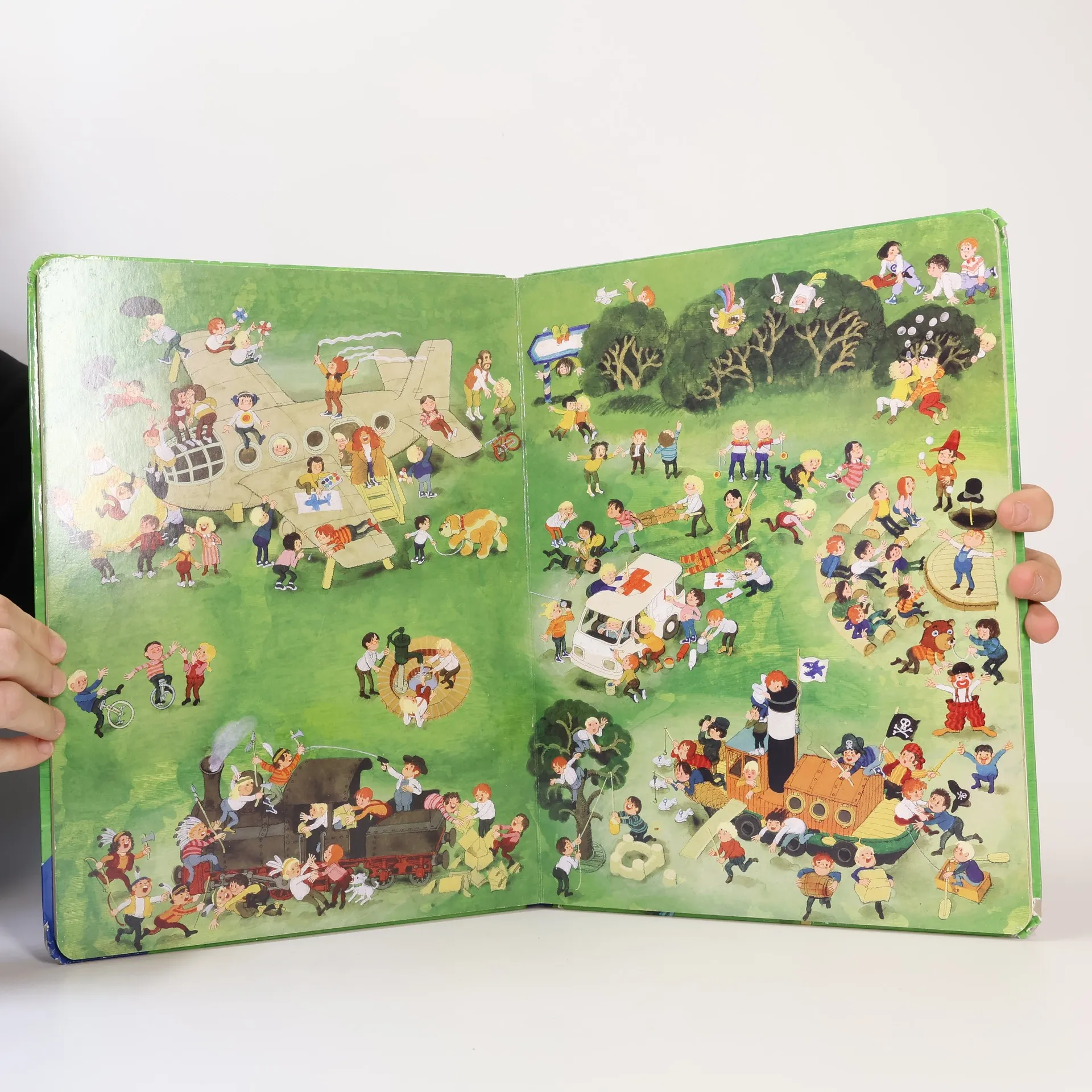 Vier der sieben großen Spielplatz-Bilder, auf denen Groß und Klein unendlich viel zu entdecken haben, sind durch eine Vignettenleiste ergänzt. Die lustigen Suchelemente fordern immer wieder aufs Neue auf, genau hinzusehen.