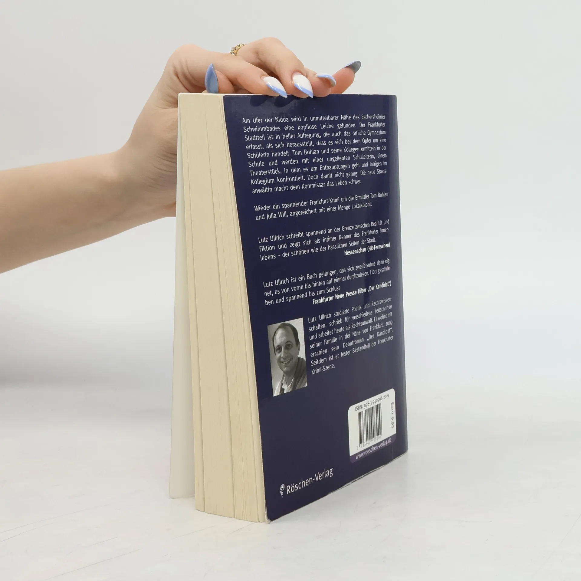 Am Ufer der Nidda wird in unmittelbarer Nähe des Eschersheimer Schwimmbades eine kopflose Leiche gefunden. Der Frankfurter Stadtteil ist in heller Aufregung, die auch das örtliche Gymnasium erfasst, als sich herausstellt, dass es sich bei dem Opfer um eine Schülerin handelt. Tom Bohlan und seine Kollegen ermitteln in der Schule und werden mit einer ungeliebten Schulleiterin, einem Theaterstück, in dem es um Enthauptungen geht und Intrigen im Kollegium konfrontiert. Doch damit nicht genug: die neue Staatsanwältin macht dem Kommissar das Leben schwer. Wieder ein spannender Frankfurt-Krimi um die Ermittler Tom Bohlan und Julia Will, angereichert mit einer Menge Lokalkolorit. Lutz Ullrich, studierte Politik und Rechtswissenschaften, schrieb für verschiedene Zeitschriften und arbeitet heute als Rechtsanwalt. Er wohnt mit seiner Familie in der Nähe von Frankfurt. 2009 erschien sein Debutroman 'Der Kandidat'. Seitdem ist er fester Bestandteil der Frankfurter Krimi-Szene.