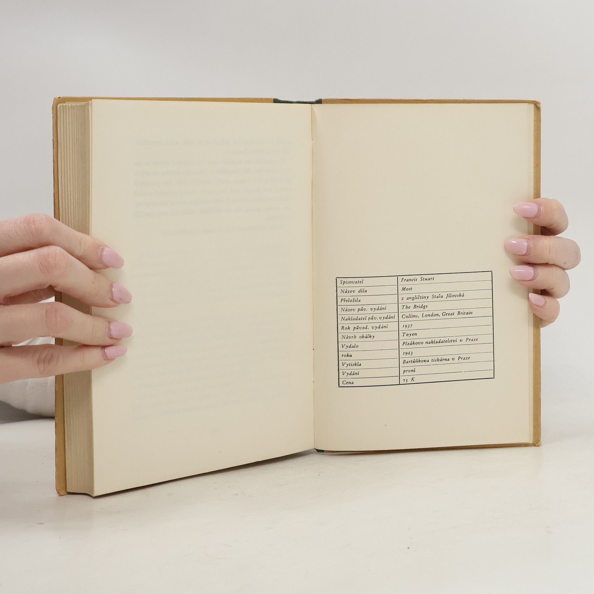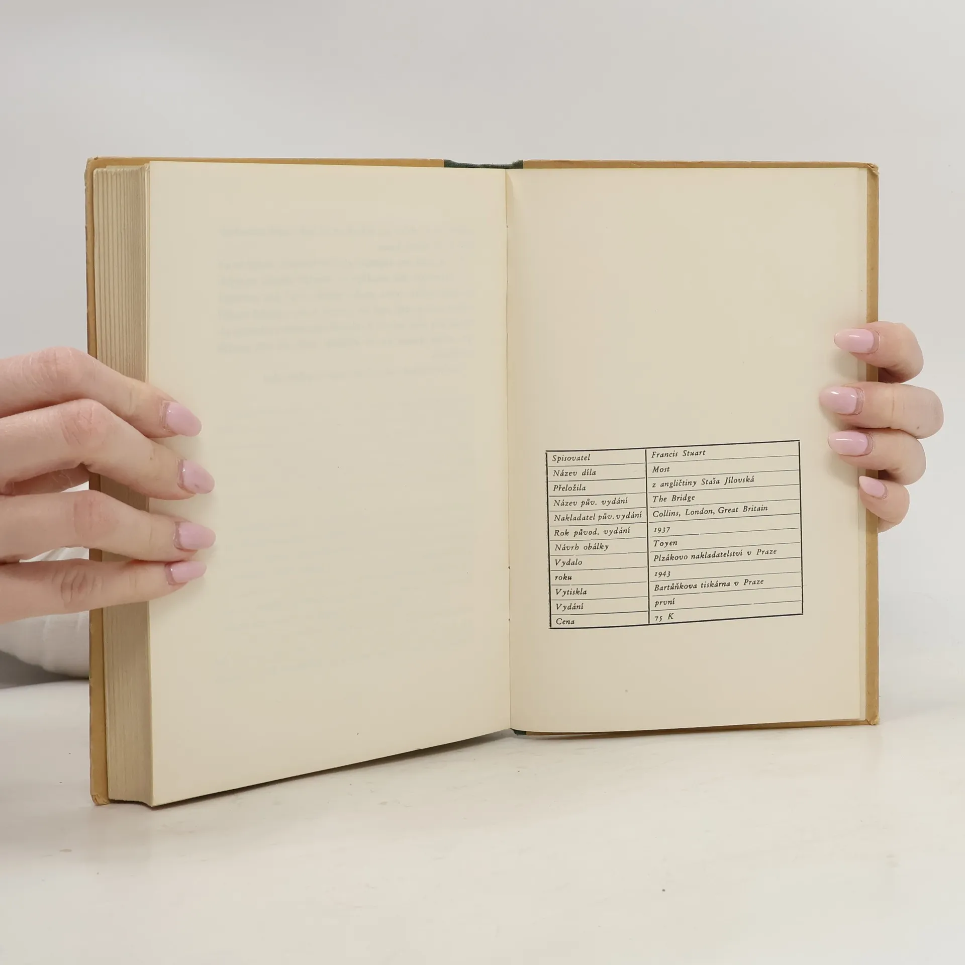 Anglický román spisovatele Francise Stuarta Most, rok původního vydání 1937, obálku navrhla Toyen.