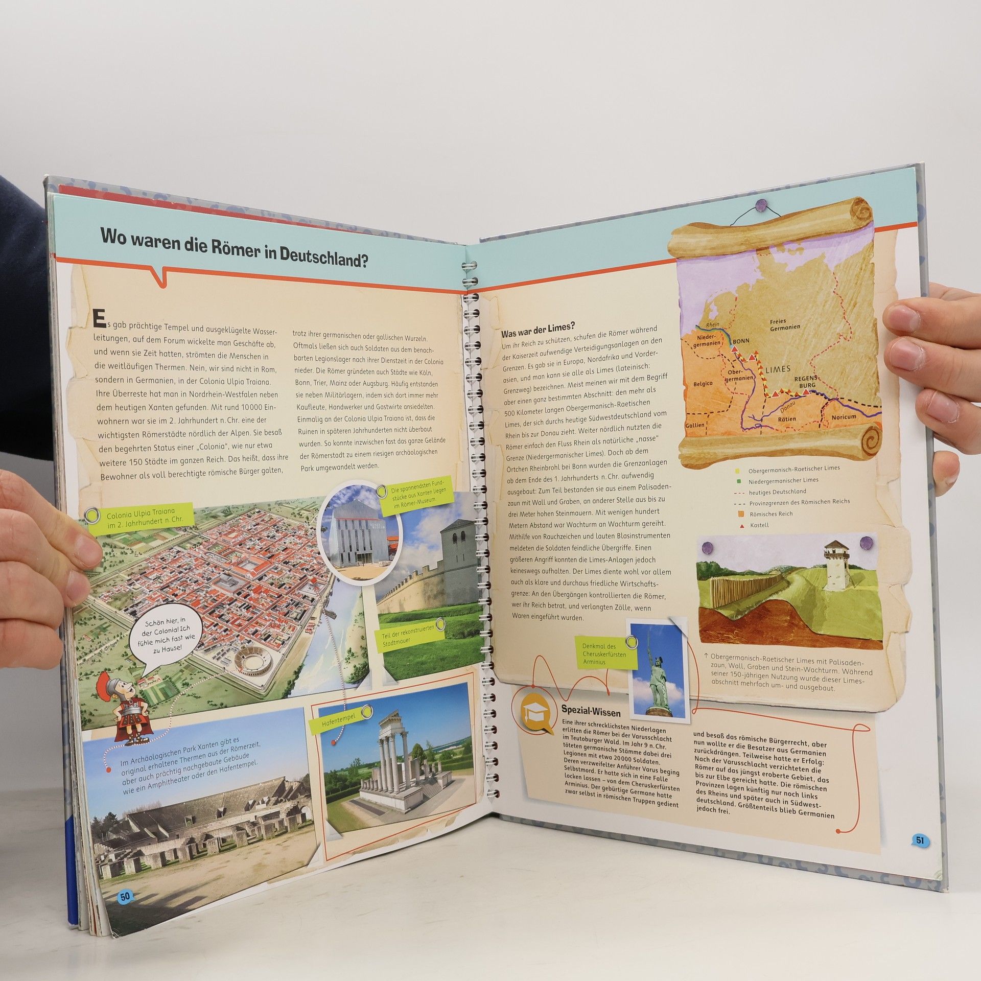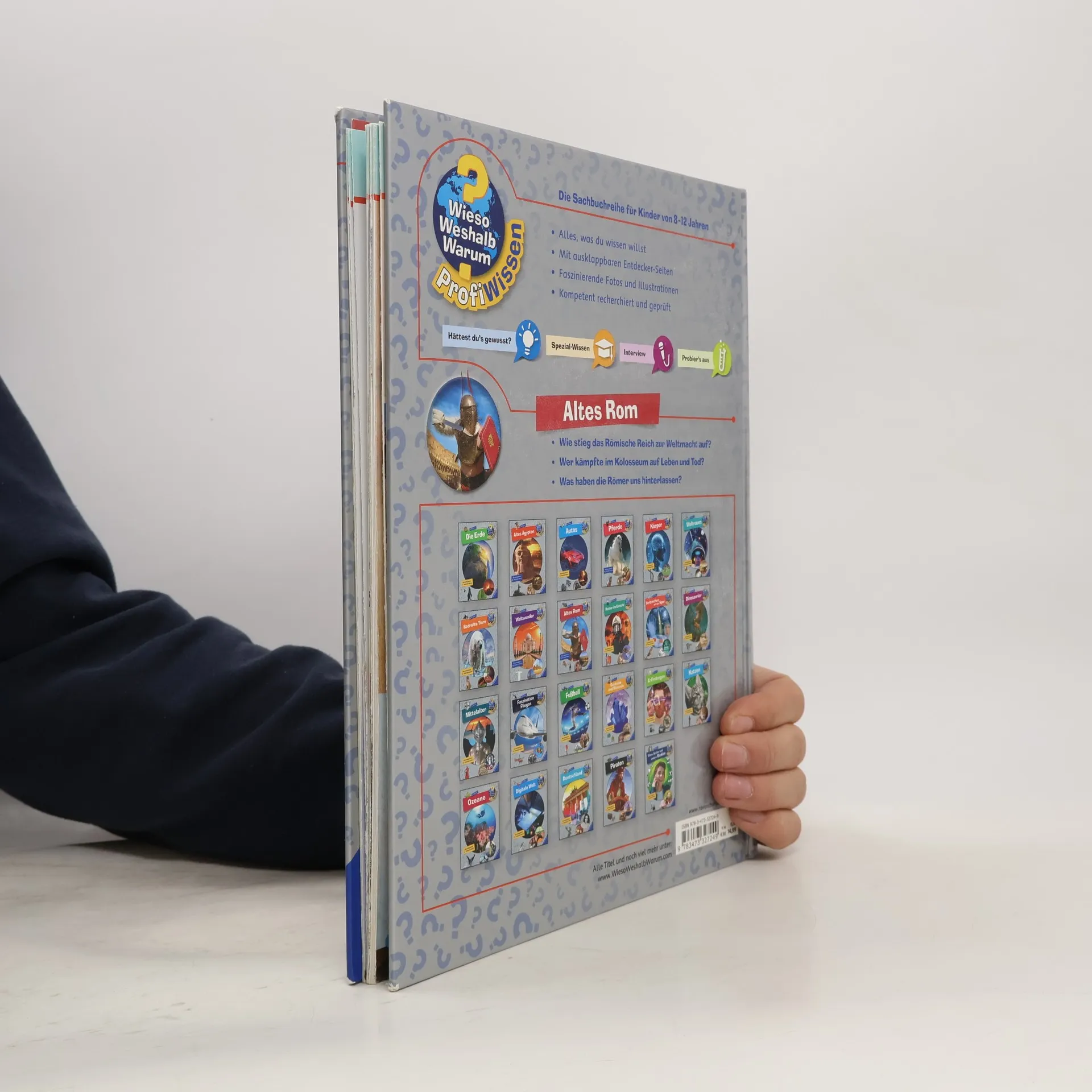 An kaum einem anderen Ort ist der Zauber einer vergangenen Epoche noch so spürbar wie in Rom. Spektakuläre antike Bauwerke wie das Kolosseum versetzen uns auch heute noch in Staunen. Dieser Band gewährt spannende Einblicke in die Geschichte und die Kultur des Römischen Reiches sowie in das alltägliche Leben im alten Rom. Einfache Experimente laden Kinder zum Mitmachen ein, etwa zum Nachkochen einer original römischen Nachspeise. Guten Appetit - oder „Bene sit tibi“, wie schon die Römer sagten. Wieso? Weshalb? Warum? ProfiWissen Die Sachbuchreihe für Kinder von 8–12 Jahren Abtauchen ins Lieblingsthema: Wann lebten die Dinos? Wie sieht es unter der Motorhaube eines Rennwagens aus? Was passiert im Weltall? Wer das ganz genau wissen möchte, ist bei Wieso? Weshalb? Warum? ProfiWissen richtig. Mit modernem Look, starken Bildern, verblüffenden Fakten und einer großen Portion Extra-Wissen! Die Texte vermitteln Sachwissen lebendig und verständlich. Witzige Comics lockern die Seiten auf. Experten lassen sich in Interviews über ihre Schulter schauen. Spezial-Wissen-Kästen bieten tiefere Einblicke. Doch hier wird nicht nur gelesen, sondern auch ausprobiert: mit vielen Anleitungen für Experimente. Und auf ausklappbaren Entdeckerseiten in jedem Band gibt es noch mehr zum Schauen und Staunen. Ein unterhaltsamer Begleiter durch die verschiedensten Wissenswelten.