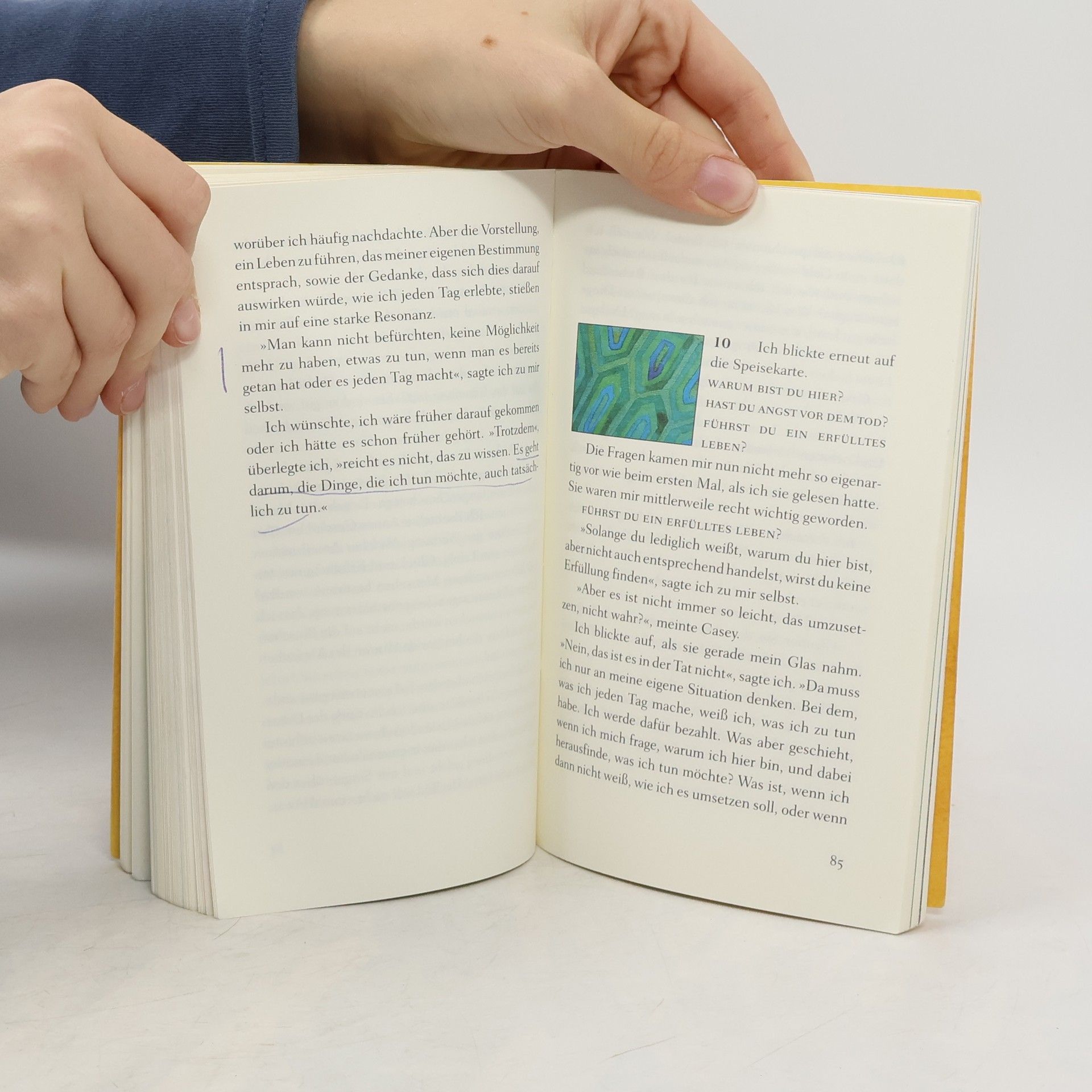 Humorvoll und anrührend Ein kleines Café mitten im Nirgendwo wird zum Wendepunkt im Leben von John, einem Werbemanager, der stets in Eile ist. Eigentlich will er nur kurz Rast machen, doch dann entdeckt er auf der Speisekarte neben dem Menü des Tages drei Fragen: »Warum bist du hier? Hast du Angst vor dem Tod? Führst du ein erfülltes Leben?« Wie seltsam – doch einmal neugierig geworden, will John mithilfe des Kochs, der Bedienung und eines Gastes dieses Geheimnis ergründen. Die Fragen nach dem Sinn des Lebens führen ihn gedanklich weit weg von seiner Vorstandsetage an die Meeresküste von Hawaii. Dabei verändert sich seine Einstellung zum Leben und zu seinen Beziehungen, und er erfährt, wie viel man von einer weisen grünen Meeresschildkröte lernen kann. So gerät diese Reise letztlich zu einer Reise zum eigenen Selbst. Ein ebenso lebendig geschriebenes, humorvolles wie anrührendes Buch. Durchgehend vierfarbig, mit Illustrationen von Root Leeb.