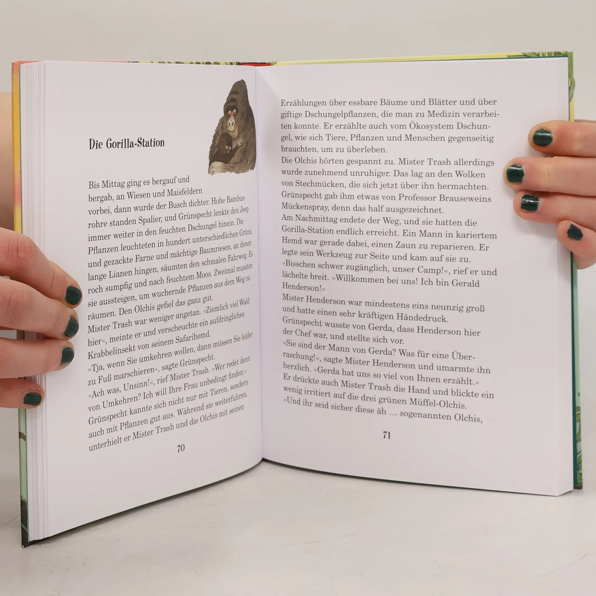 Schleime-Schlamm-und-Löwenmut! Die Olchis retten wilde Tiere. Gustav Grünspecht, Tierforscher in Schmuddelfing, bittet die Olchis um Hilfe: Seine Frau Gerda, die sich um bedrohte Berggorillas kümmert, ist spurlos verschwunden. In Afrika erfahren die Olchis, dass der Lebensraum der Berggorillas durch einen großen Ölkonzern bedroht ist. Ob der dubiose Mr Trash, der sich nicht abschütteln lässt, etwas mit der geplanten Pipeline und dem Verschwinden von Gerda Grünspecht zu tun hat? Mit vielen farbigen Bildern von Erhard Dietl.