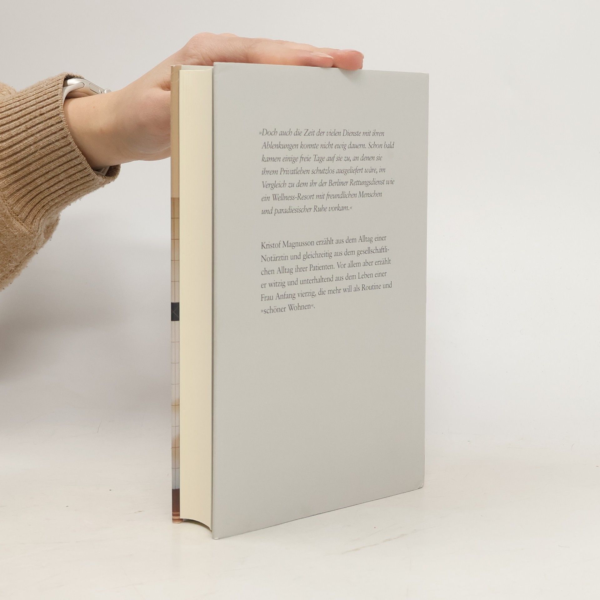 Anita Cornelius ist Notärztin an einem großen Berliner Krankenhaus und liebt ihren Beruf. Sich auf unerwartete Situationen einzustellen, entspricht ihrem Temperament. Auch wenn es bei ihren Einsätzen nicht immer so aufregend zugeht, wie man sich das vorstellt. Anita ist das recht. Sie kann helfen. Und ab und zu sogar jemandem etwas Gutes tun. Adrian, ihr Exmann, ist Arzt am selben Krankenhaus. Sie haben sich erst vor kurzem in bestem Einvernehmen getrennt, und Lukas, ihr vierzehnjähriger Sohn, lebt bei seinem Vater und dessen neuer Freundin Heidi. Hätte Anita Adrian nicht zufällig bewusstlos auf der Krankenhaustoilette gefunden, zugedröhnt mit einem Narkosemittel, und hätte Heidi nicht dauernd diese flotten Sprüche losgelassen, dass jeder seines Glückes Schmied ist, dass Arme und Kranke oft genug selbst an ihrem Zustand schuld sind, dann könnte sich Anita weiter vormachen: alles ist in bester Ordnung. Ist es aber nicht. Weder privat noch beruflich. Kristof Magnusson erzählt mit großer Kenntnis aus dem Alltag einer Notärztin und gleichzeitig aus dem Alltag ihrer Patienten. Vor allem aber erzählt er witzig und unterhaltend aus dem Leben einer Frau Anfang vierzig, die mehr will als Routine und 'schöner Wohnen'.