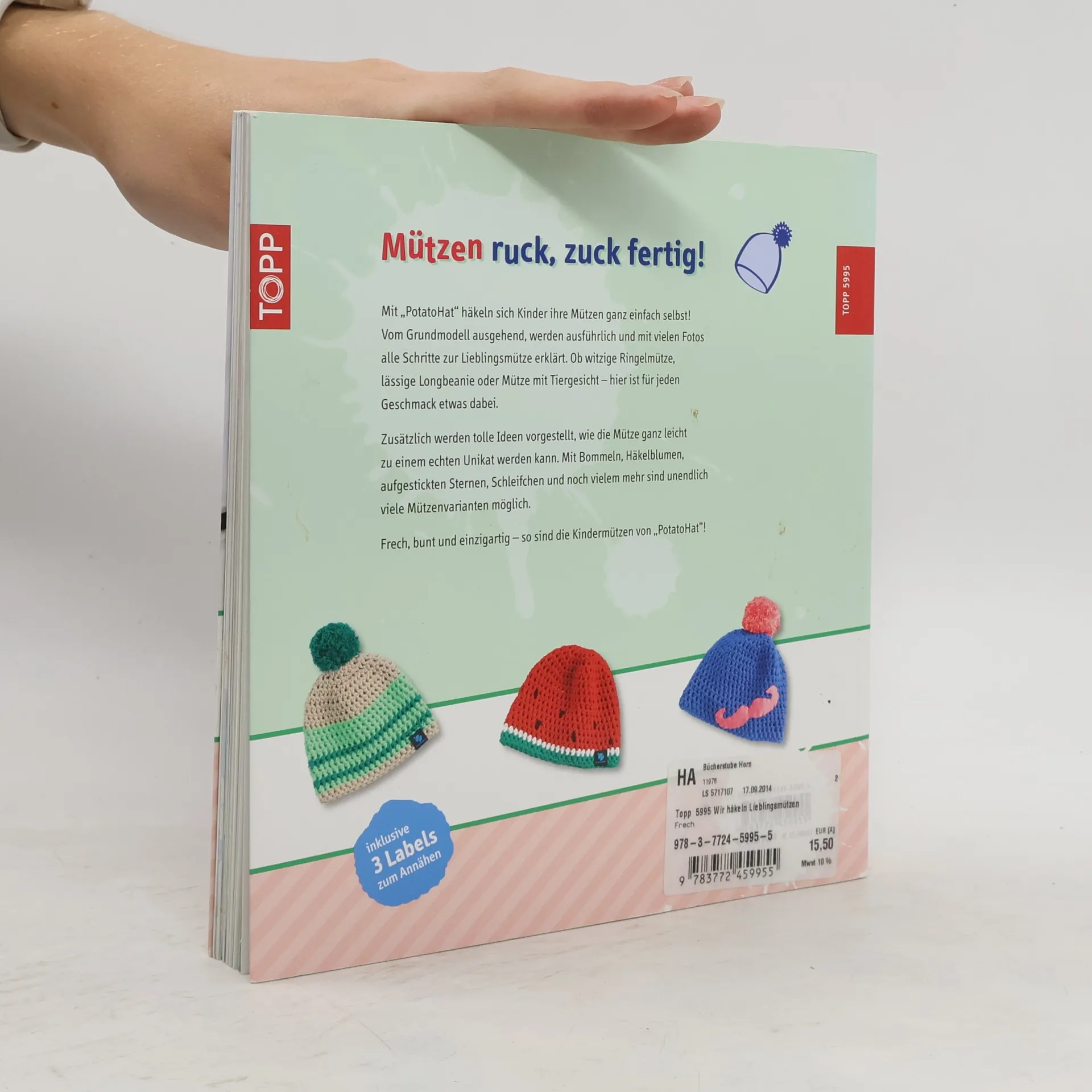 PotatoHat. Wir häkeln Lieblingsmützen. Eine Mütze – viele Varianten. Kinder häkeln ihre Mützen selbst! Das einzige Mützenhäkelbuch für Kinder auf dem Markt. Großer Einführungsteil und zahlreiche Schrittfotos. 96 Seiten, 21,8 x 23 cm, Flexobroschur