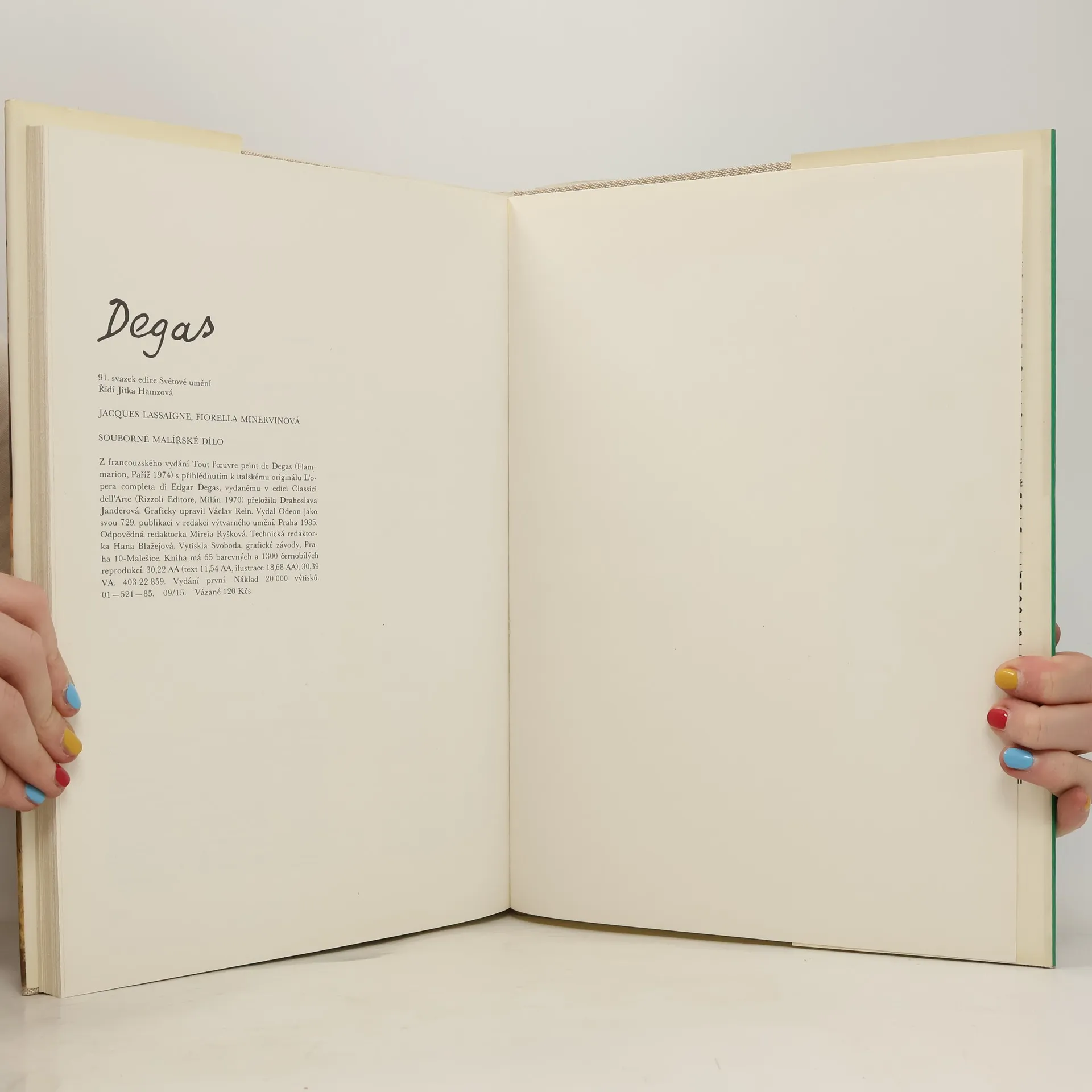 Monografie věnovaná francouzskému malíři a sochaři Edgarovi Degas/1834-1917/ obsahuje vedle úvodního textu i bohatou obrazovou přílohu. - Rejstřík děl a míst jejich uložení; - životopisná data a údaje; - chronologický a ikonografický katalog děl.