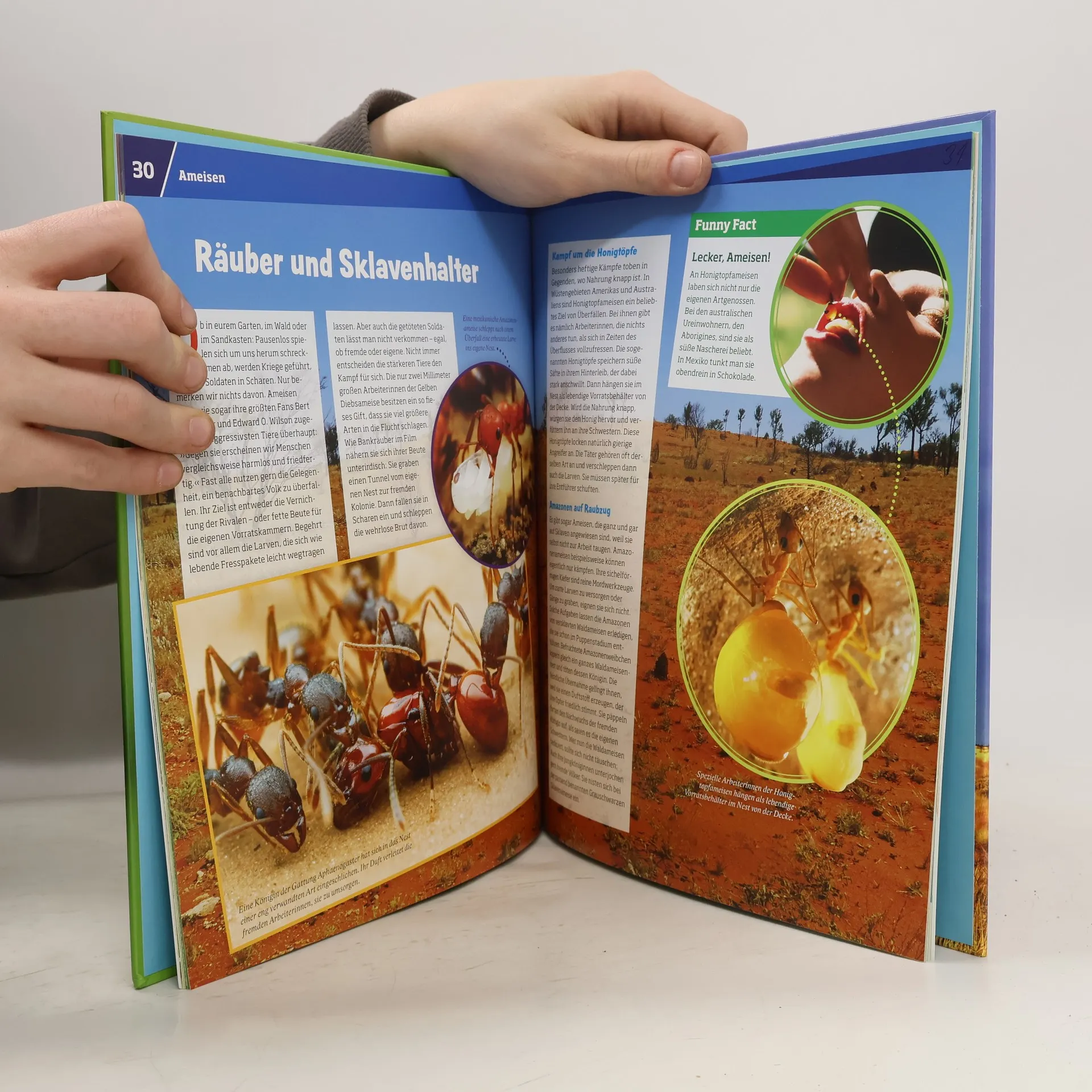 Das Leben der Ameisen ähnelt dem der Menschen mehr, als wir vermuten. Sie leben in hoch entwickelten Gesellschaften, praktizieren Arbeitsteilung und unterhalten sich in einer Sprache der Düfte, die wie unsere Sprache einer Grammatik folgt. Auch das Zusammenleben der Termiten orientiert sich an einem ausgeklügelten Plan. WAS IST WAS lädt in das geheimnisvolle Reich der Königinnen, Soldaten und Architekten ein, interviewt eine Bodentermite und Ameisen, die Gärten anlegen und Landwirtschaft betreiben. Kann man Ameisen als Haustiere halten? Können Geschöpfe, die unter Gehwegplatten oder in Steckdosen überleben, wirklich vom Aussterben bedroht sein? Was ist „Mimikry“?