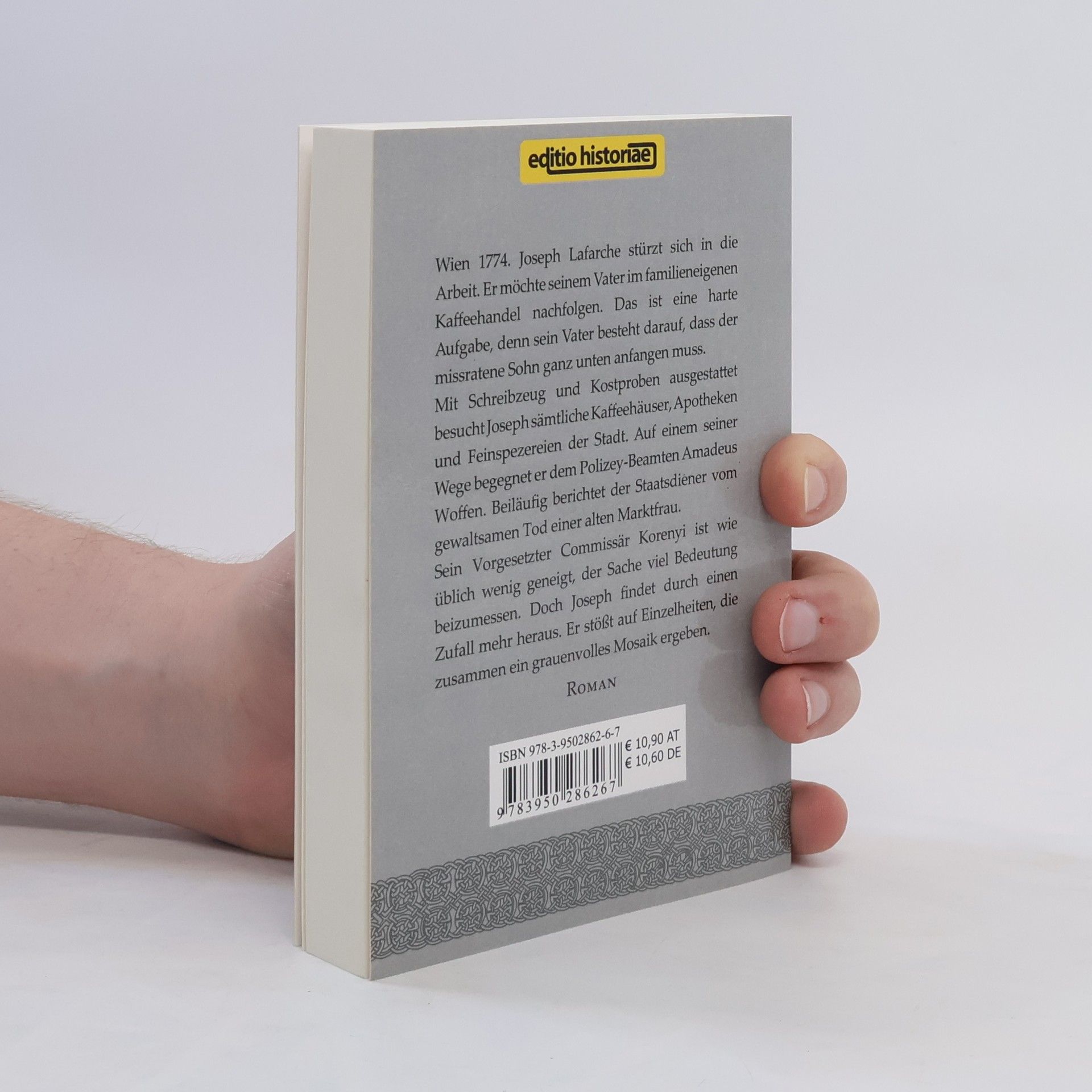 Wien 1774. Joseph Lafarche vermisst seine Studentenzeit. Statt nächtelanger Sauftouren, läuft er sich nun die Füsse platt, um von seinem Vater das Kaffeegeschäft von Grund auf zu lernen. Einer seiner besten Freunde fröhnt nach wie vor dem alten Lebensstil, doch versucht er die gesundheitlichen Folgen mit fragwürdigen Mittelchen zu bekämpfen. Joseph vergisst diese Episode schnell wieder, denn eine ganz andere Sache zieht seine Aufmerksamkeit an. Criminal-Commissär Korenyi erzählt ihm von seiner neuesten Vorfallenheit.