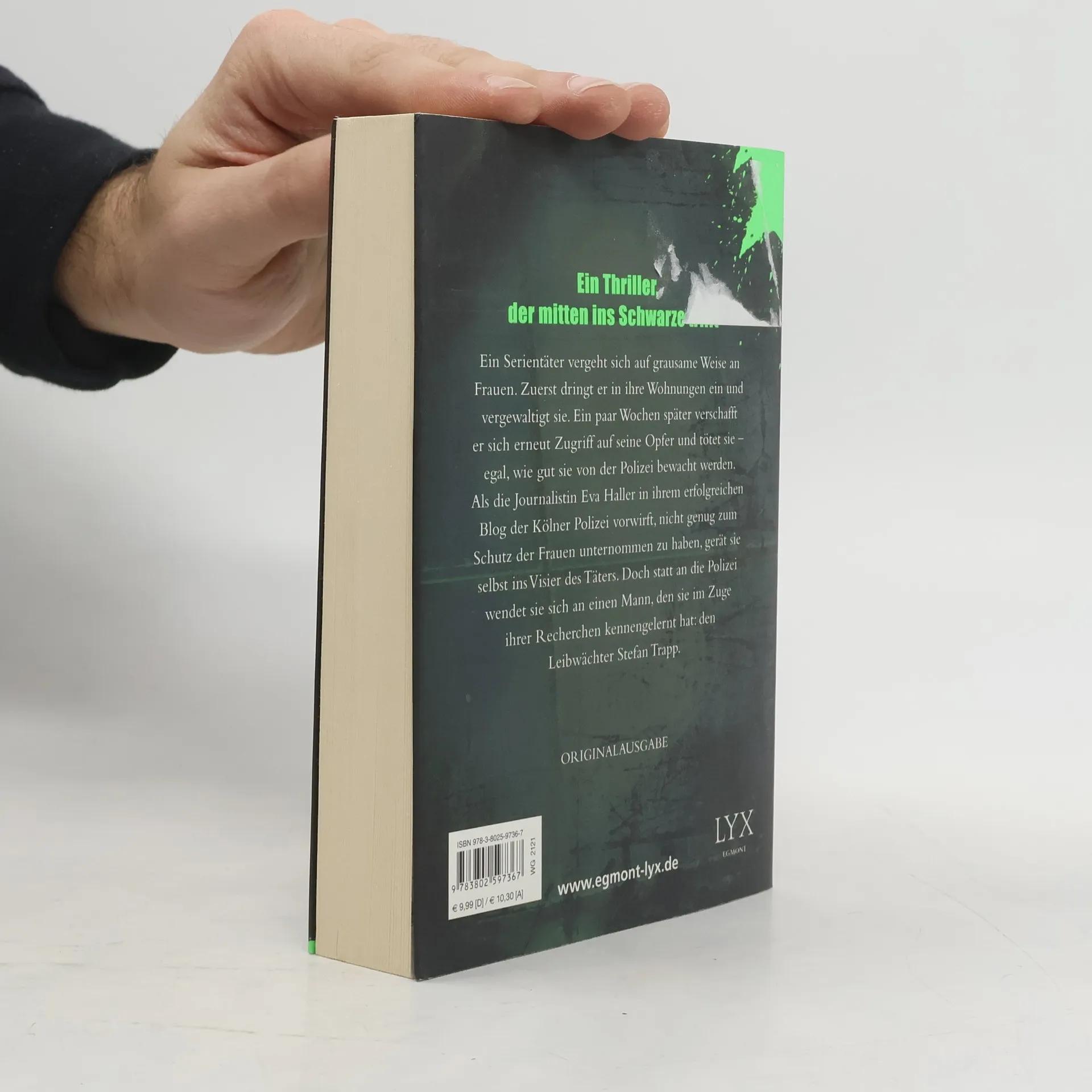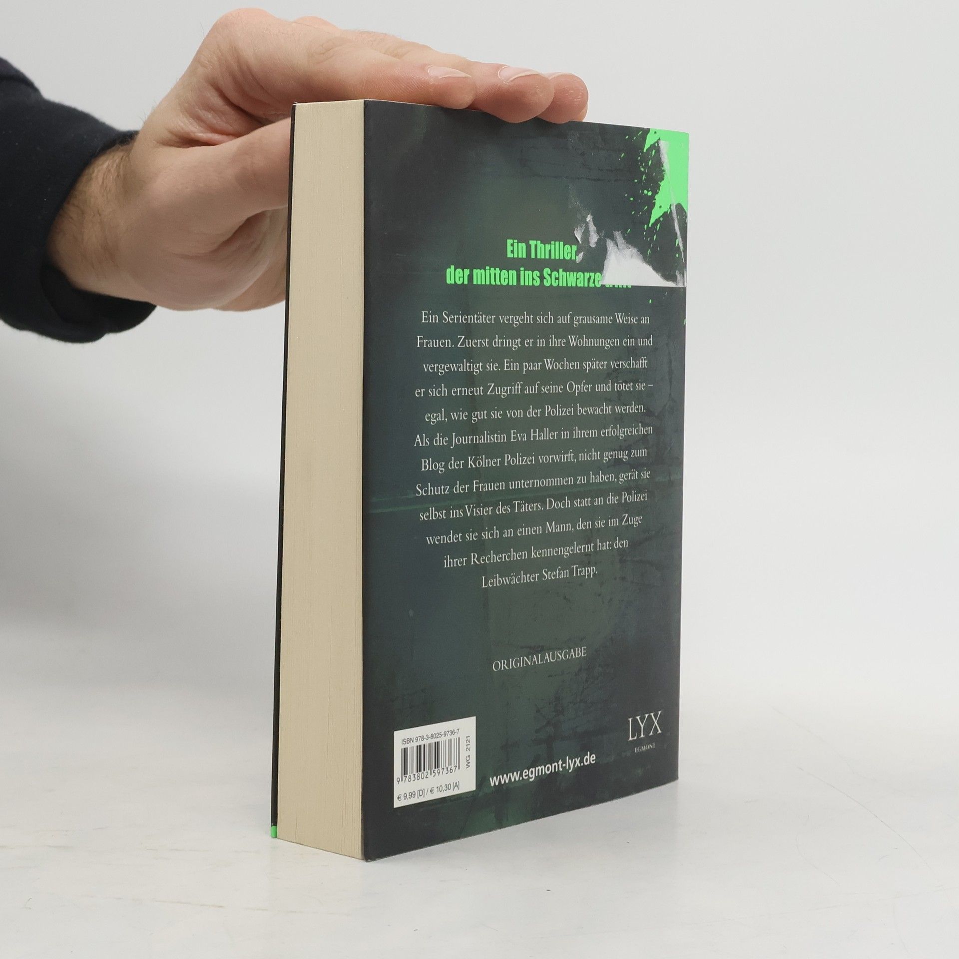 Ein Serientäter vergeht sich auf grausame Weise an Frauen. Zuerst dringt er in ihre Wohnungen ein und vergewaltigt sie. Ein paar Wochen später verschafft er sich erneut Zugriff auf seine Opfer und tötet sie - egal, wie gut sie von der Polizei bewacht werden. Als die Journalistin Eva Haller in ihrem erfolgreichen Blog der Kölner Polizei vorwirft, nicht genug zum Schutz der Frauen unternommen zu haben, gerät sie selbst ins Visier des Täters. Statt an die Polizei wendet sie sich jedoch an einen Mann, den sie im Zuge ihrer Recherchen kennengelernt hat: den Leibwächter Stefan Trapp.