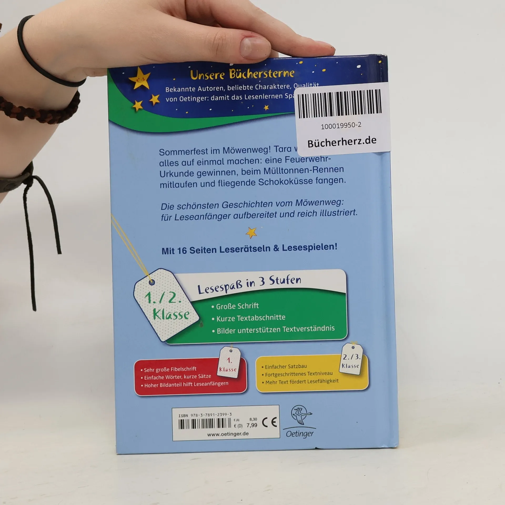 Keiner kann so schön feiern wie die Kinder aus dem Möwenweg! Im Möwenweg wird ja immer lustig gefeiert, aber beim großen Fest im Ort trauen Tara und die anderen Kinder aus dem Möwenweg ihren Augen kaum: Es gibt so viel zu erleben! Sie können eine Feuerwehr-Urkunde gewinnen und beim Mülltonnenrennen mitmachen, Schokoküsse mit dem Mund fangen, Würstchen essen und Limonade trinken. Abends am Lagerfeuer ist Tara sich sicher, dass jeder Tag so schön sein sollte! Macht gute Laune: Band 3 der „Möwenweg“-Erstleser, nach einer Episode aus den Kinderbüchern. Von Kirsten Boie selbst für Leseanfänger aufbereitet. Lesen lernen mit „Büchersterne“ für die 1./2. Klasse: große Schrift, kurze Textabschnitte und viele Bilder, die das Textverständnis von Leseanfängern unterstützen. Dazu 16 Seiten Leserätsel und Lesespiele im Anhang.