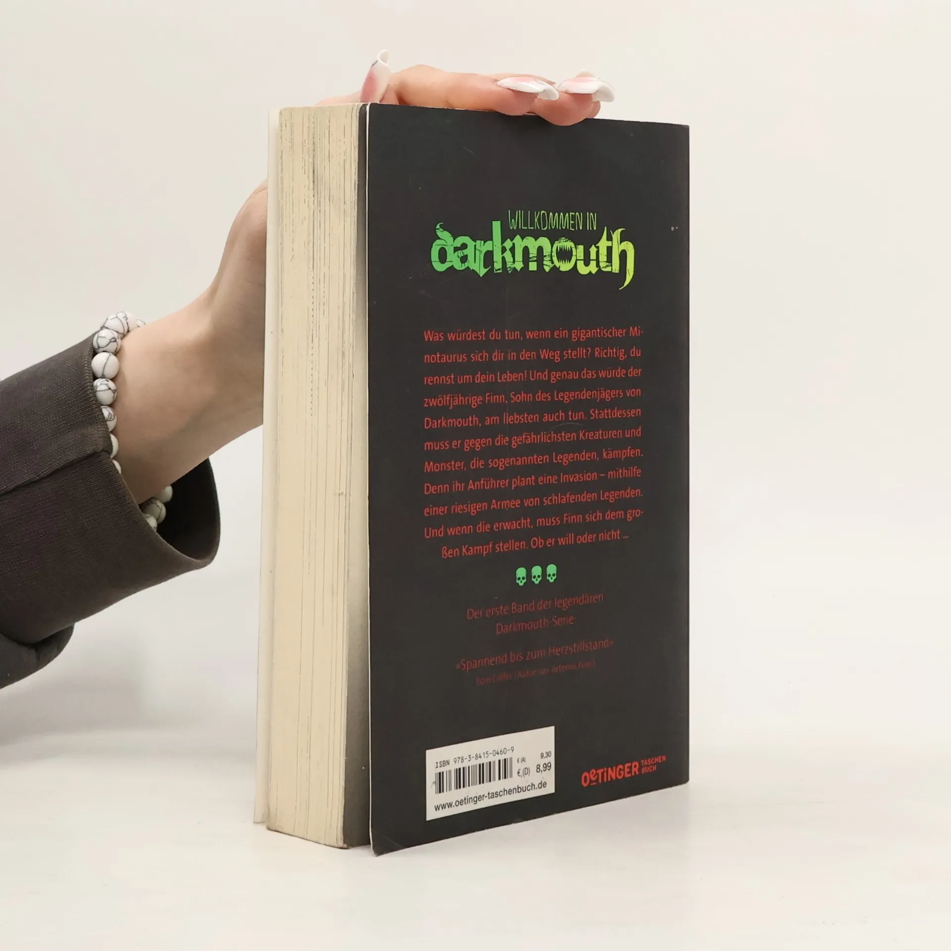 Es gibt 1000 Gründe, nach Darkmouth zu kommen. Und eine Million, es lieber zu lassen. Das Leben des zwölfjährigen Finn ist alles andere als langweilig. Denn er ist der Sohn des letzten amtierenden „Legendenjägers“ von Darkmouth. Dabei will er mit den Monstern eigentlich gar nichts zu tun haben! Doch als der finstere Riese Gantrua plant, geheime Portale zur „Verseuchten Seite“ zu öffnen und die gruseligsten und gefährlichsten Legenden auf Darkmouth loszulassen, hat Finn keine Wahl. Gemeinsam mit seinem Vater und der vorwitzigen Emmie stellt er sich dem großen Kampf. Erster Band der Erfolgsserie mit dem sympathischen Antiheld Finn und seiner Freundin Emmie. Eine perfekte Mischung aus Action, gefährlichen Kreaturen, Tempo, Spannung und viel Witz.