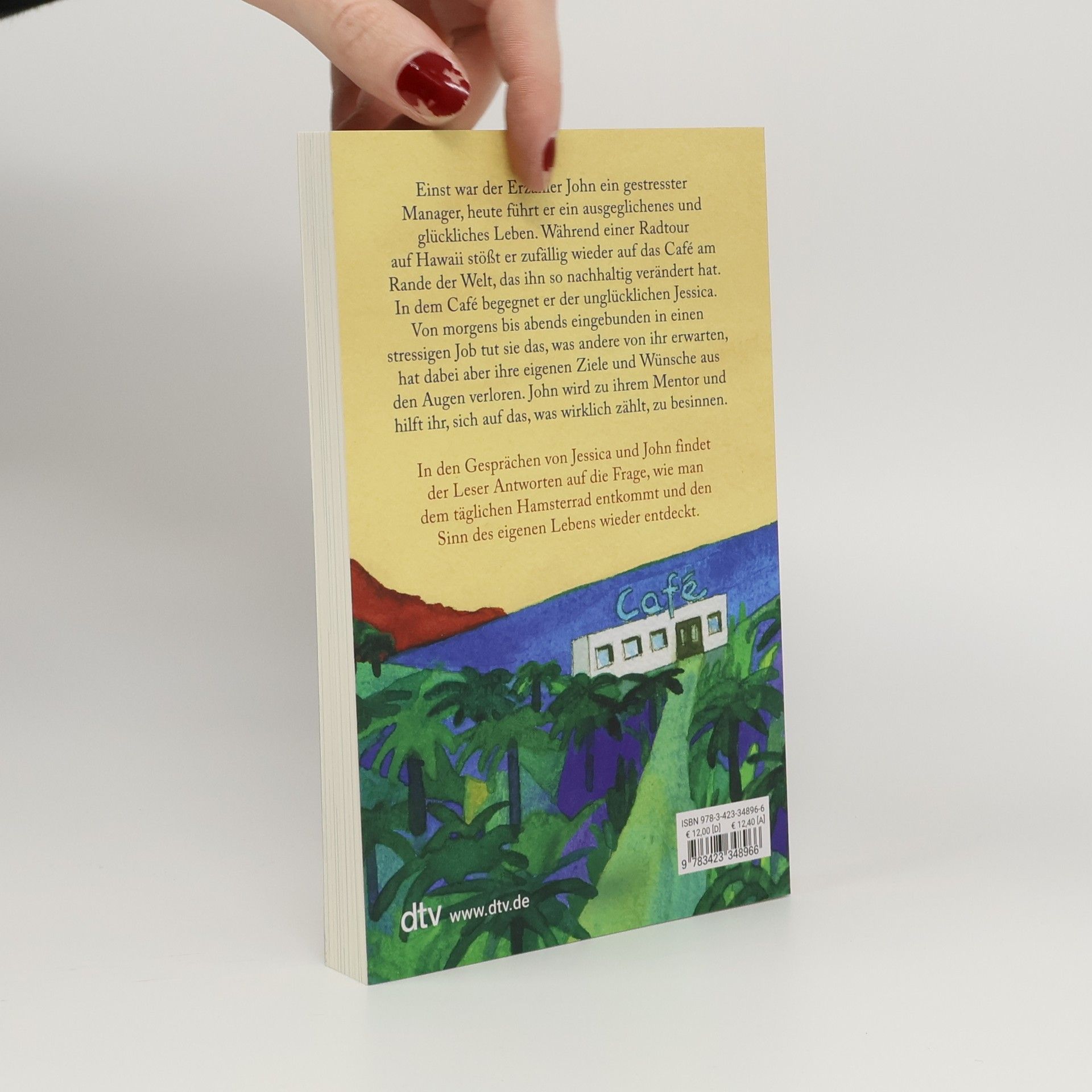 Inspirationen fürs eigene Leben Einst war der Erzähler John ein gestresster Manager, heute führt er ein ausgeglichenes und glückliches Leben. Während einer Radtour auf Hawaii erinnert sich John an den Tag vor zehn Jahren, der sein Leben radikal verändert hat. Damals war er zufällig auf das Café am Rande der Welt gestoßen. Und obwohl er sich an einem völlig anderen Ort befindet, Tausende Kilometer entfernt, sieht er es plötzlich wieder. In dem Café begegnet er Jessica, die unglücklich mit ihrem Leben ist. Eingebunden in ein stressiges Arbeitsleben, tut sie das, was andere von ihr erwarten, hat dabei aber ihre eigenen Ziele und Wünsche aus den Augen verloren. John wird zu ihrem Mentor und hilft ihr, sich auf den Sinn ihres Lebens zu besinnen. In den Gesprächen von Jessica und John findet der Leser Antworten auf die Frage, wie man dem täglichen Hamsterrad entkommt und den Sinn des eigenen Lebens wieder entdeckt. Wunderbar vierfarbig illustriert von Root Leeb.