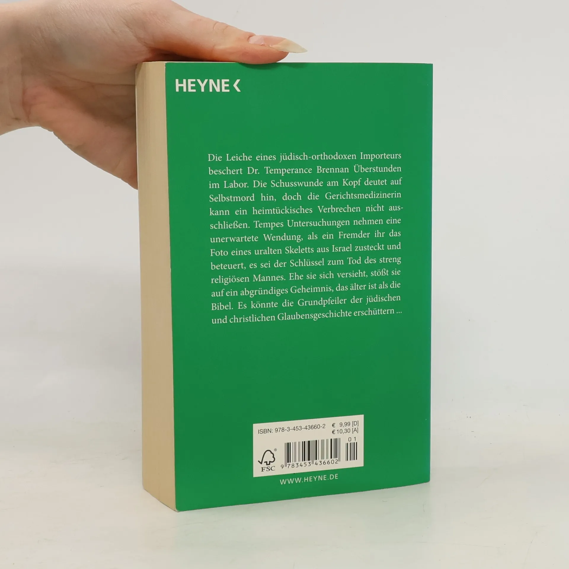 Die Leiche eines jüdisch-orthodoxen Importeurs beschert Dr. Temperance Brennan Überstunden im Labor. Die Schusswunde am Kopf deutet auf Selbstmord hin, doch die Gerichtsmedizinerin kann ein heimtückisches Verbrechen nicht ausschließen. Tempes Untersuchungen nehmen eine unerwartete Wendung, als ein Fremder ihr das Foto eines uralten Skeletts aus Israel zusteckt und beteuert, es sei der Schlüssel zum Tod des streng religiösen Mannes. Ehe sie sich’s versieht, stößt sie auf ein abgründiges Geheimnis, das älter ist als die Bibel. Es könnte die Grundpfeiler der jüdischen und christlichen Glaubensgeschichte erschüttern ...