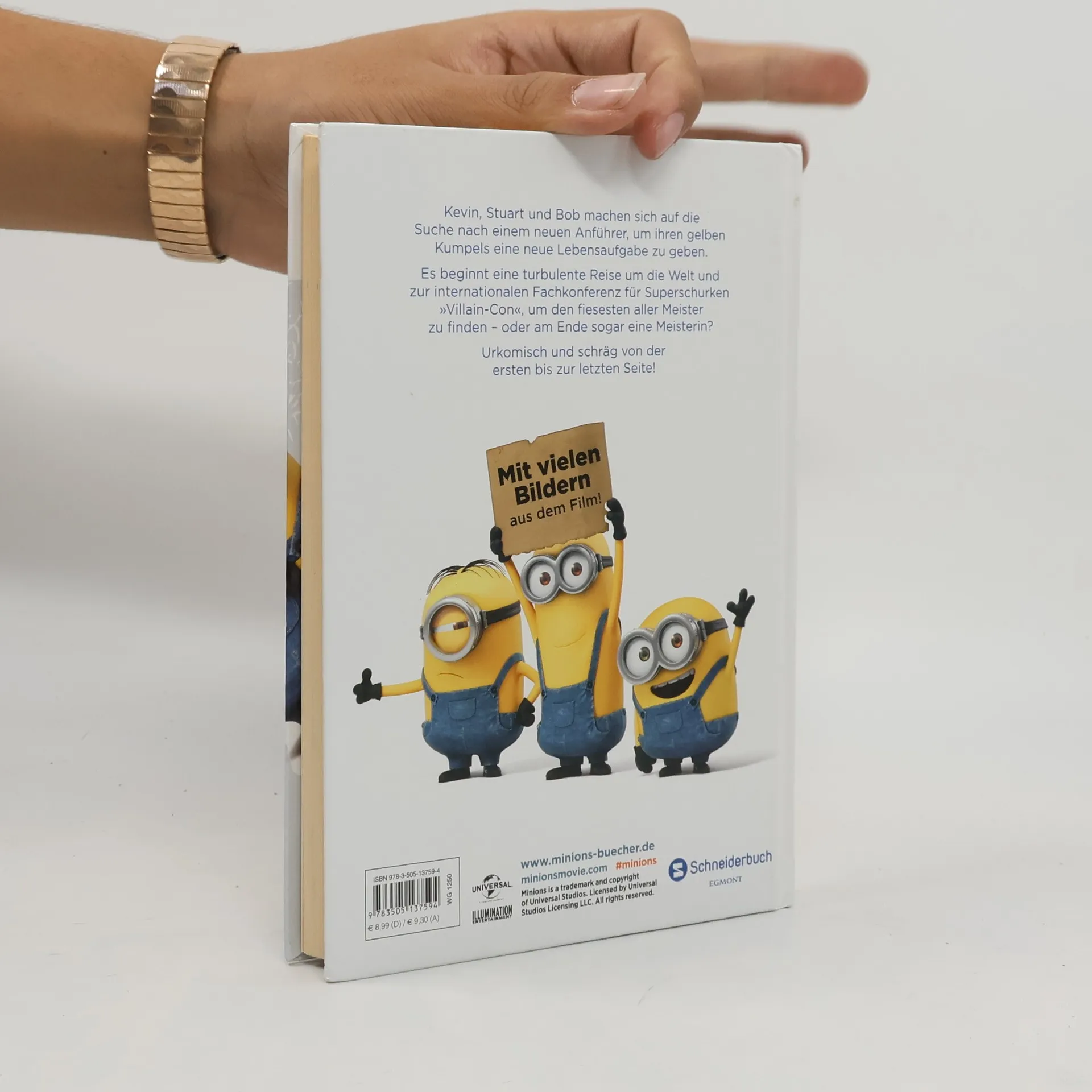 Großer Auftritt für die kleinen, gelben Helferlein aus den Kinoerfolgen „Ich – einfach unverbesserlich“ 1 + 2. Kevin, Stuart und Bob machen sich auf die Suche nach einem neuen Anführer, um ihren gelben Kumpels eine neue Lebensaufgabe zu geben. Es beginnt eine turbulente Reise um die Welt und zur internationalen Konferenz der Schurken und Bösewichte »Villain-Con«, um den fiesesten aller Meister zu finden – oder am Ende sogar eine Meisterin? Urkomisch und schräg von der ersten bis zur letzten Seite!