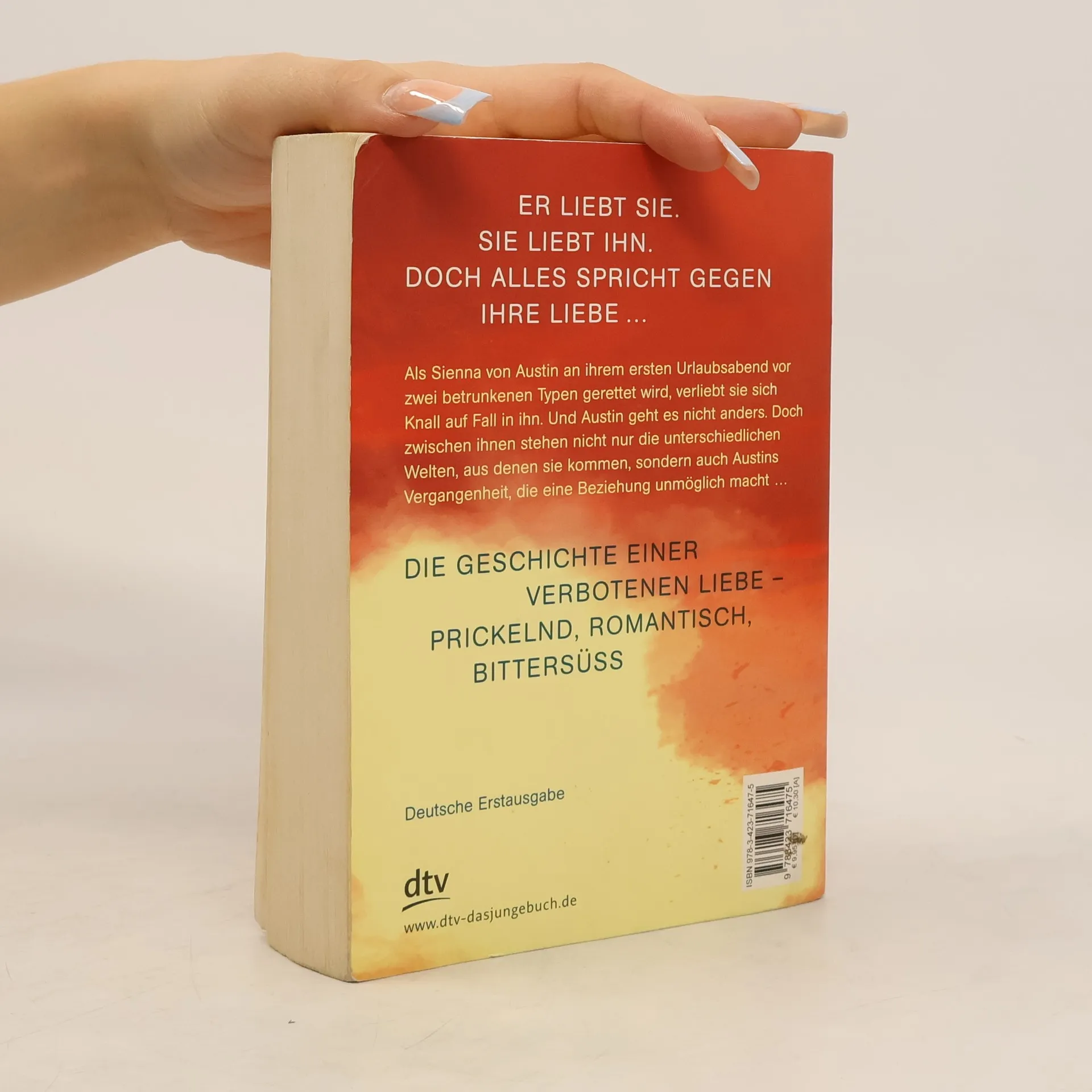 Good girl meets bad boy Als Austin Sienna an ihrem ersten Urlaubsabend vor einer Horde grölender junger Männer rettet, verliebt er sich Knall auf Fall in sie. Und Sienna geht es nicht anders. Doch zwischen ihnen stehen die unterschiedlichen Welten, aus denen sie kommen, eine gewaltige Menge an Problemen und Schuldgefühlen, die Sienna mit sich herumträgt, und nicht zuletzt Austins Vergangenheit, die eine Beziehung unmöglich macht.
