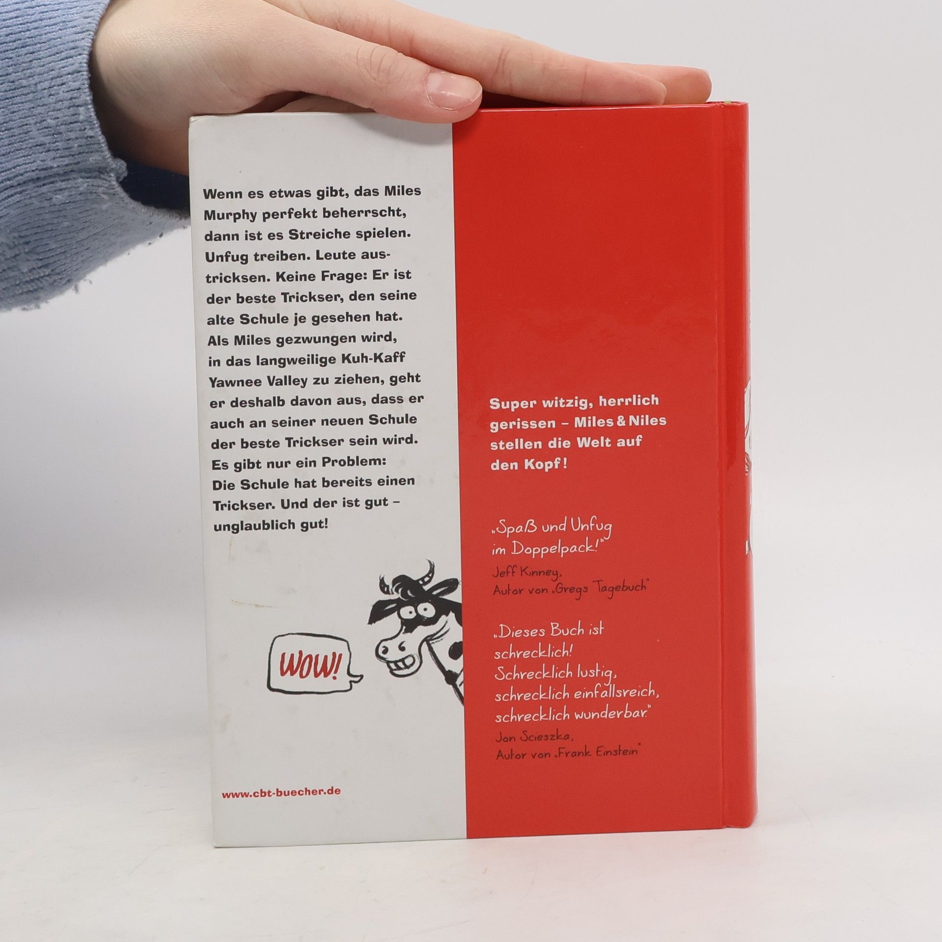 Zwei geniale Trickser, die sich gesucht und gefunden haben ... Wenn es etwas gibt, das Miles Murphy perfekt beherrscht, dann ist es Streiche spielen. Unfug treiben. Leute austricksen. Keine Frage: Er ist der beste Trickser, den seine alte Schule je gesehen hat. Als Miles gezwungen wird, in das langweilige Kuh-Kaff Yawnee Valley zu ziehen, geht er deshalb davon aus, dass er auch an seiner neuen Schule der beste Trickser sein wird. Es gibt nur ein Problem: Die Schule hat schon einen Trickser. Und der ist gut – unglaublich gut!Miles ist entsetzt zu sehen, dass sein Konkurrent einem Phantom gleicht: Niemand kennt ihn, nie fliegen seine Streiche auf! Als Miles entdeckt, dass ausgerechnet Lehrerliebling Niles hinter den Geniestreichen steckt, entspinnt sich der größte Trickser-Wettstreit, den Yawnee Valley je gesehen hat. Der Auftakt der beliebten Dein Spiegel-Bestsellerreihe - herrlich albernern und frecher Lesespaß für Jungs & Mädchen. Alle Bände der „Miles & Niles“-Reihe: Hirnzellen im Hinterhalt (Band 1)Schlimmer geht immer (Band 2)Jetzt wird's wild (Band 3)Einer geht noch (Band 4) Ausstattung: Mit s/w Illustrationen